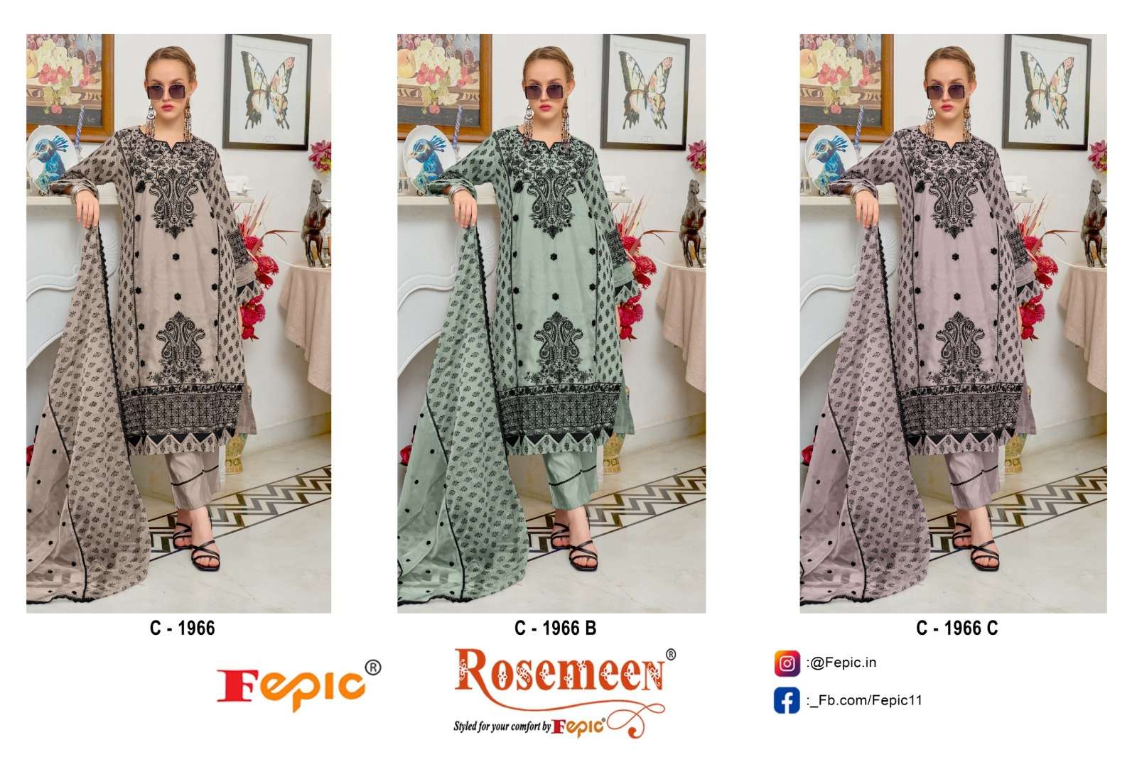 Buy Online ROSEMEEN D NO 1966 by FEPIC ORGANZA suit collection manufacturer surat 3 Pcs of Full Catalogue at Wholesale Price. Looking for ROSEMEEN D NO 1966 by FEPIC ORGANZA suit collection manufacturer surat Full Catalouge at Best Price? Buy Now ROSEMEEN D NO 1966 by FEPIC ORGANZA suit collection manufacturer surat at Wholesale Rate of Rs 3633 with Total 3 Pcs from authroized dealer and supplier of FEPIC Brand. Cost of Each piece is just only Rs 1211 which is very low and affordable price to resale the product in your retail store ,This is Surat based Wholesale Supplier & Dealer of FEPIC Brand. Click on Brand name to Know more about FEPIC Brand's products.Call or Whatsapp on 9898838984 for booking or enquiry