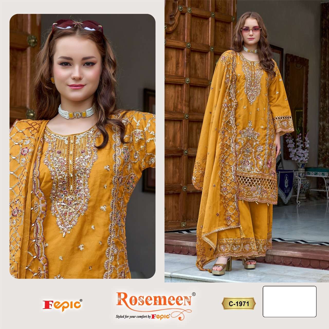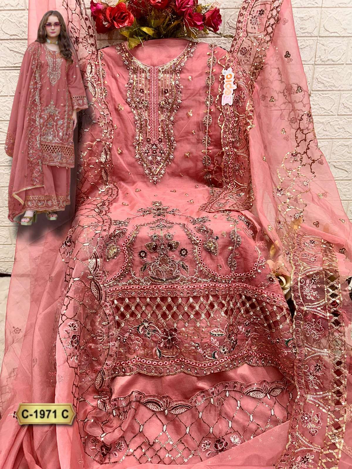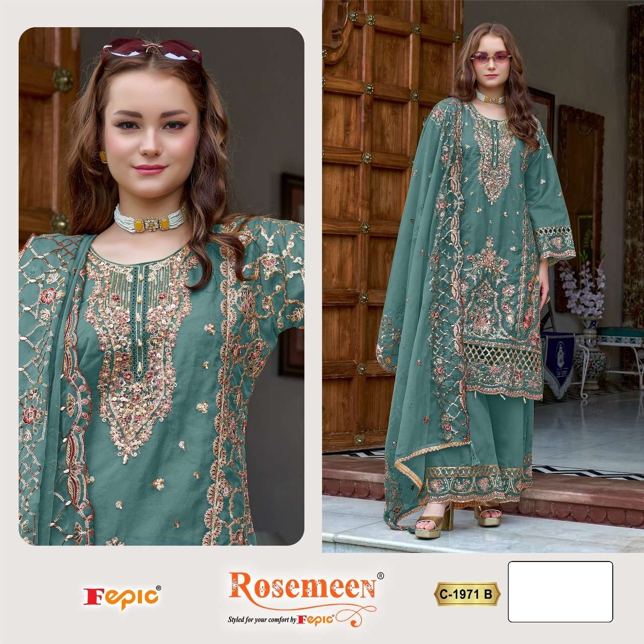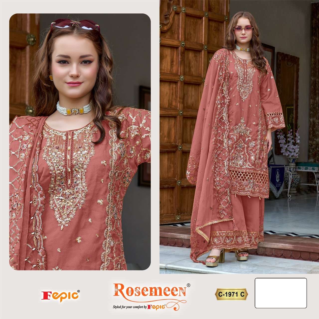 ROSEMEEN D NO 1971 by FEPIC ORGANZA suit collection manufacturer surat
