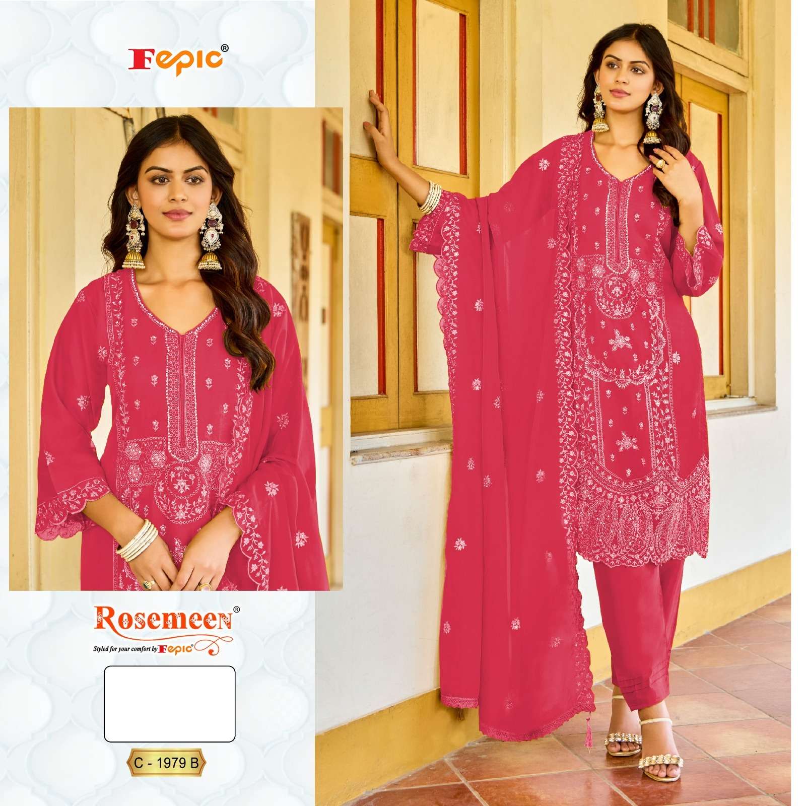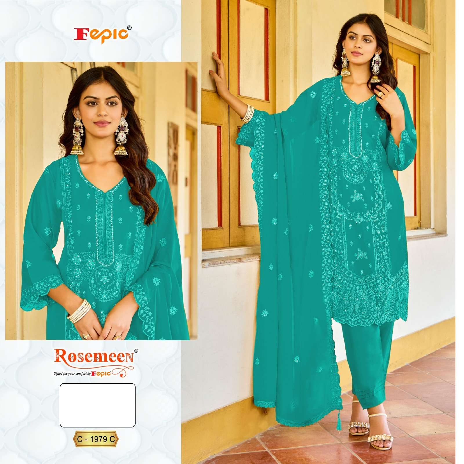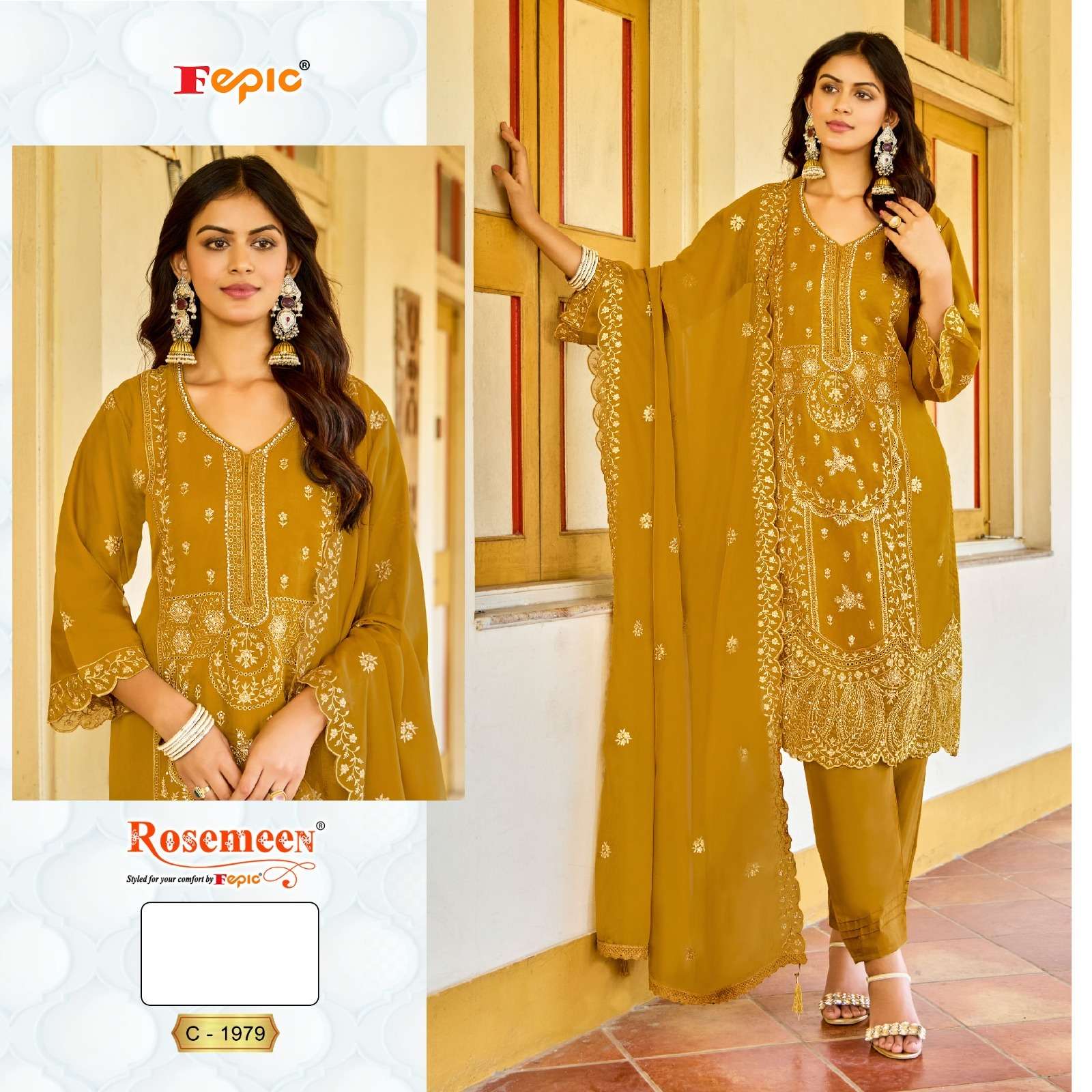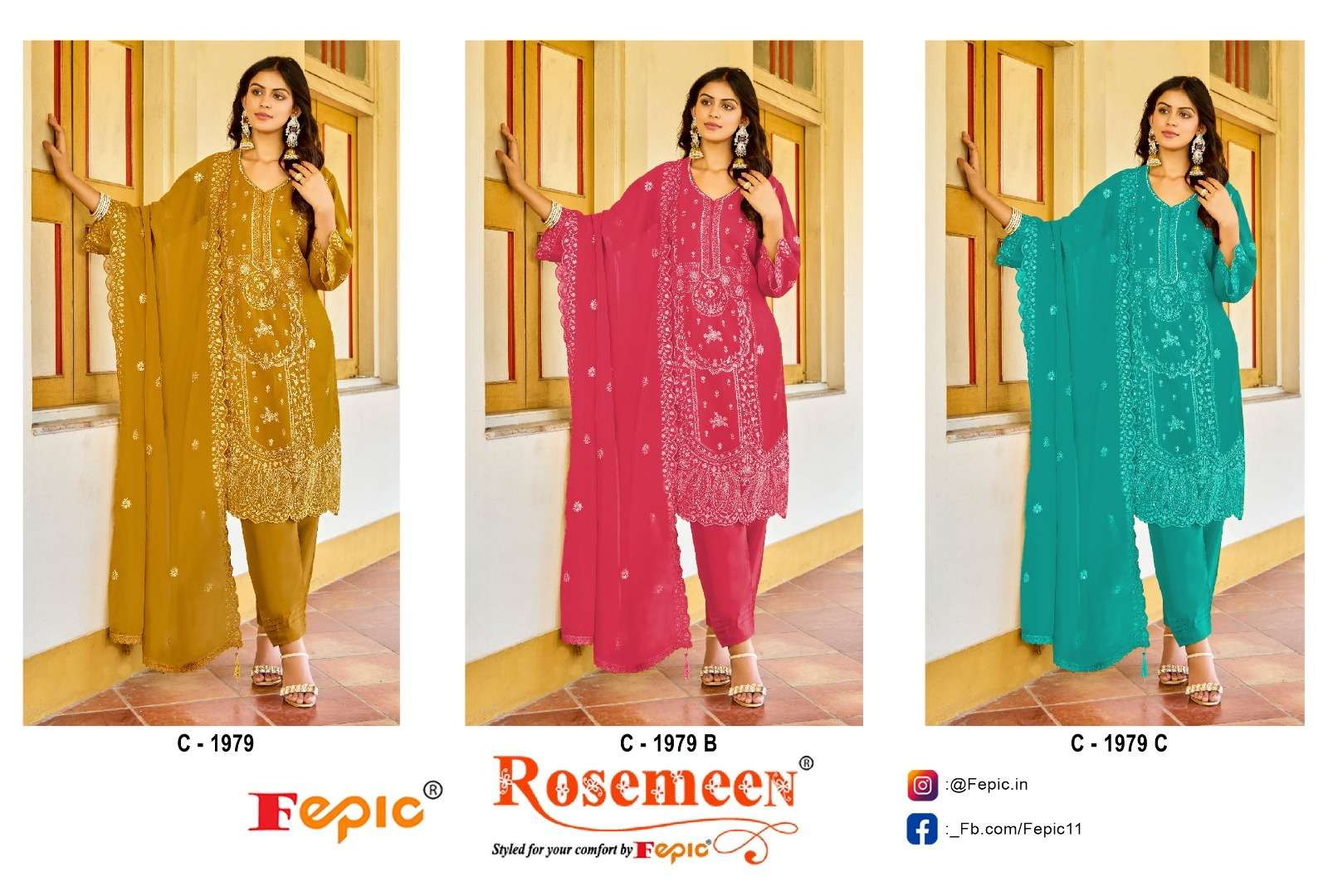 Buy Online ROSEMEEN D NO 1979 by FEPIC suit collection manufacturer surat 3 Pcs of Full Catalogue at Wholesale Price. Looking for ROSEMEEN D NO 1979 by FEPIC suit collection manufacturer surat Full Catalouge at Best Price? Buy Now ROSEMEEN D NO 1979 by FEPIC suit collection manufacturer surat at Wholesale Rate of Rs 3777 with Total 3 Pcs from authroized dealer and supplier of FEPIC Brand. Cost of Each piece is just only Rs 1259 which is very low and affordable price to resale the product in your retail store ,This is Surat based Wholesale Supplier & Dealer of FEPIC Brand. Click on Brand name to Know more about FEPIC Brand's products.Call or Whatsapp on 9898838984 for booking or enquiry