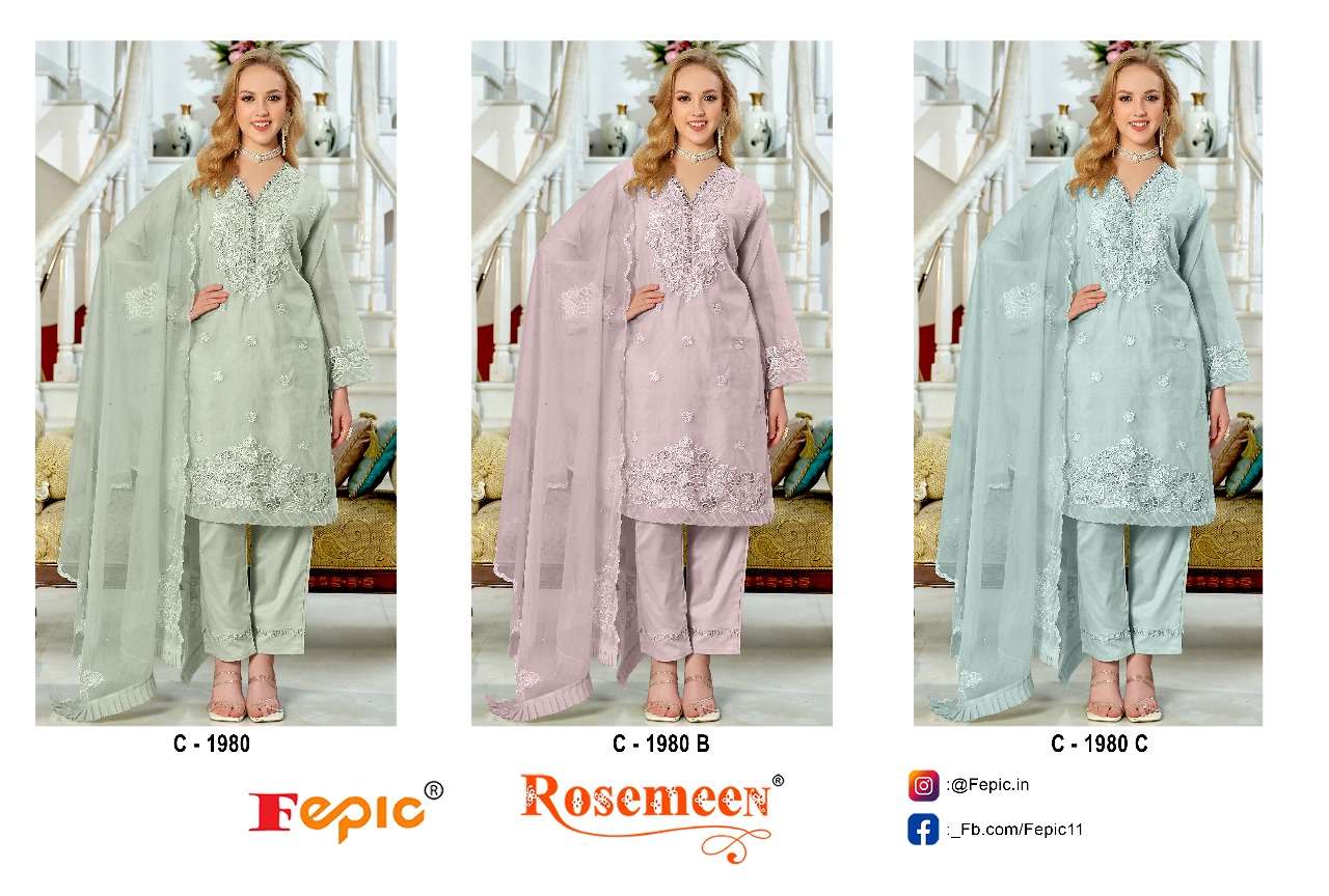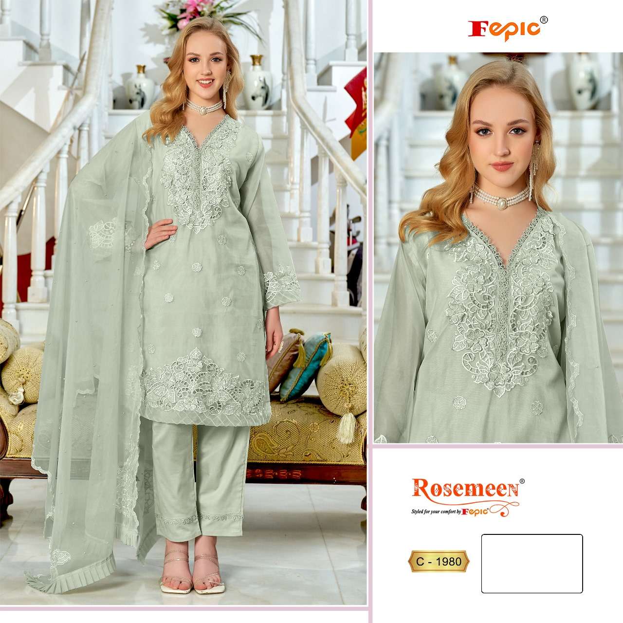 Buy Online ROSEMEEN D NO 1980 By fepic ORGANZA suit collection manufacturer surat 3 Pcs of Full Catalogue at Wholesale Price. Looking for ROSEMEEN D NO 1980 By fepic ORGANZA suit collection manufacturer surat Full Catalouge at Best Price? Buy Now ROSEMEEN D NO 1980 By fepic ORGANZA suit collection manufacturer surat at Wholesale Rate of Rs 3573 with Total 3 Pcs from authroized dealer and supplier of FEPIC Brand. Cost of Each piece is just only Rs 1191 which is very low and affordable price to resale the product in your retail store ,This is Surat based Wholesale Supplier & Dealer of FEPIC Brand. Click on Brand name to Know more about FEPIC Brand's products.Call or Whatsapp on 9898838984 for booking or enquiry
