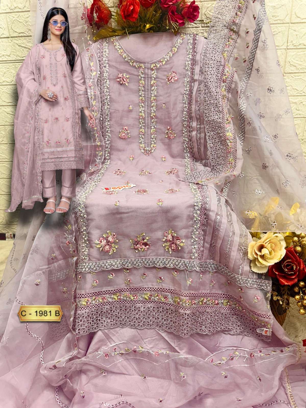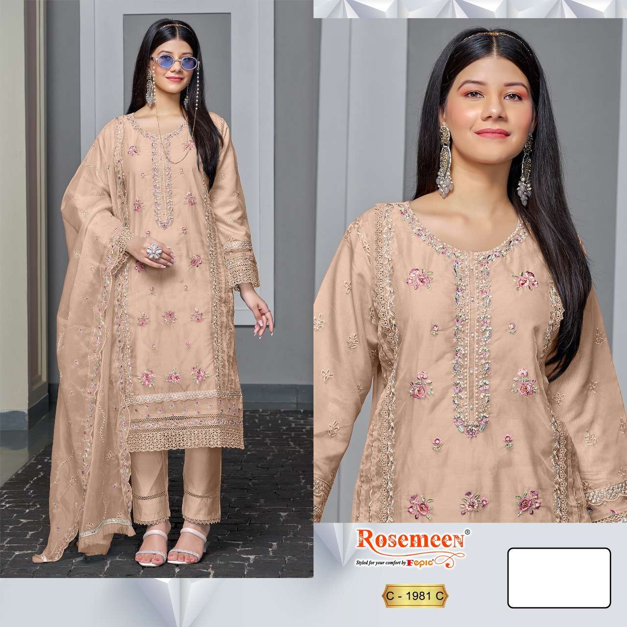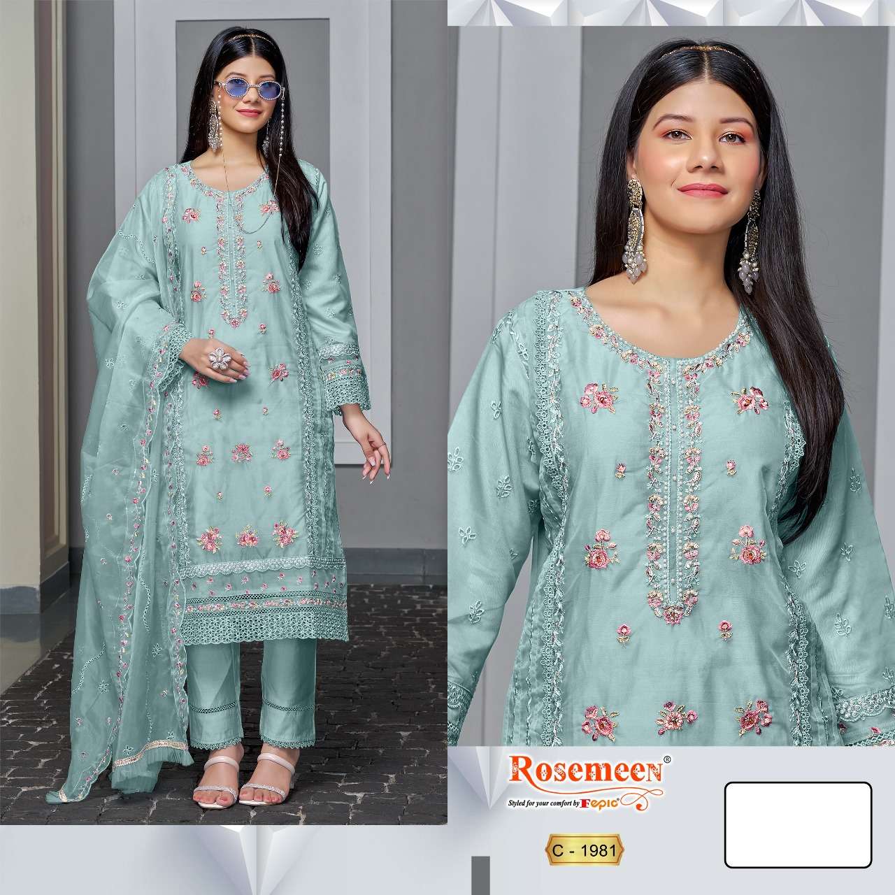 ROSEMEEN D NO 1981 By FEPIC ORGANZA suit collection manufacturer surat