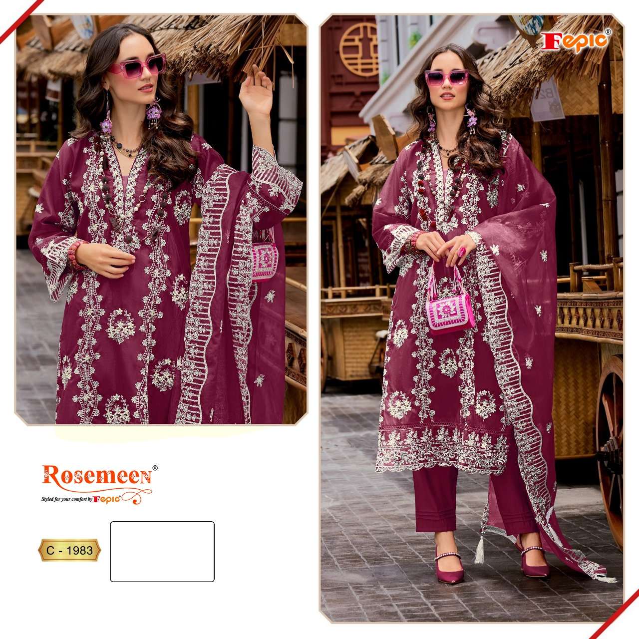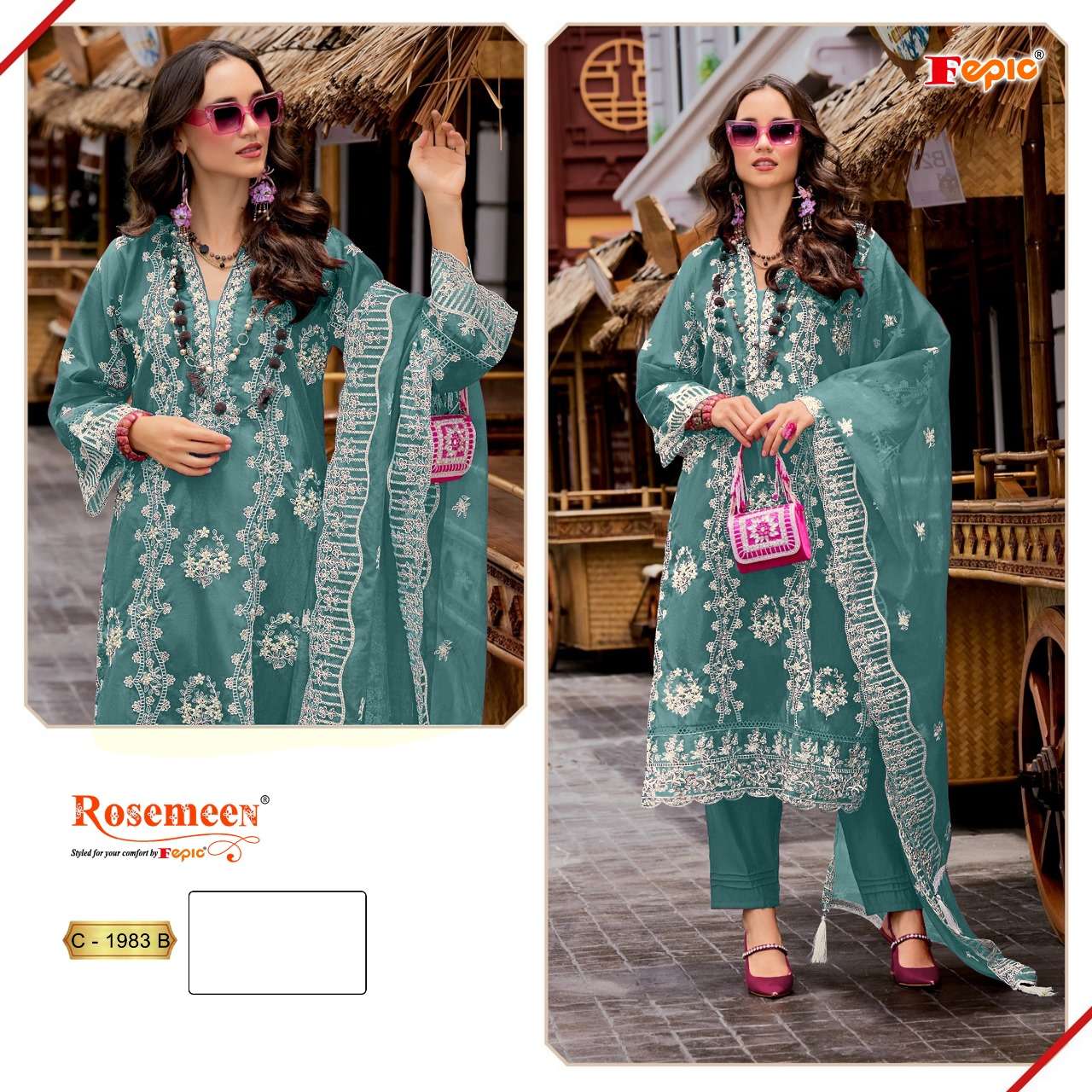 ROSEMEEN D NO 1983 by FEPIC ORGANZA suit collection manufacturer surat