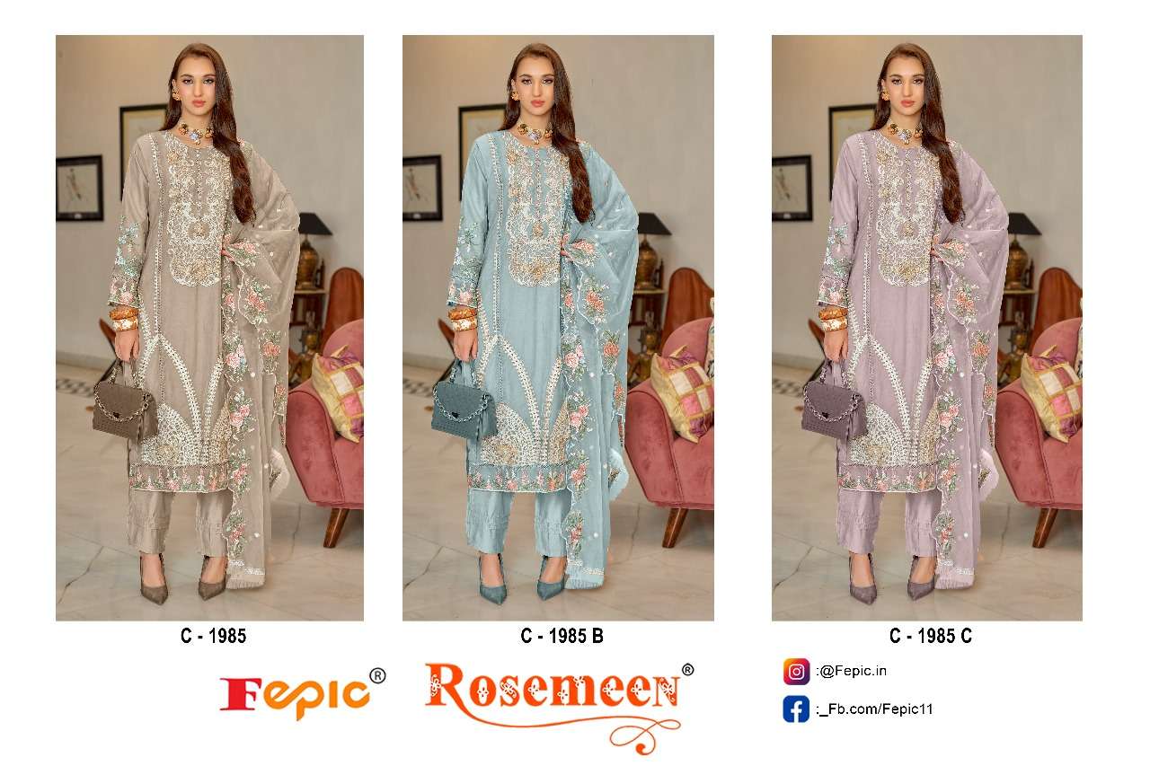 ROSEMEEN D NO 1985 by FEPIC ORGANZA Suit collection manufacturer surat