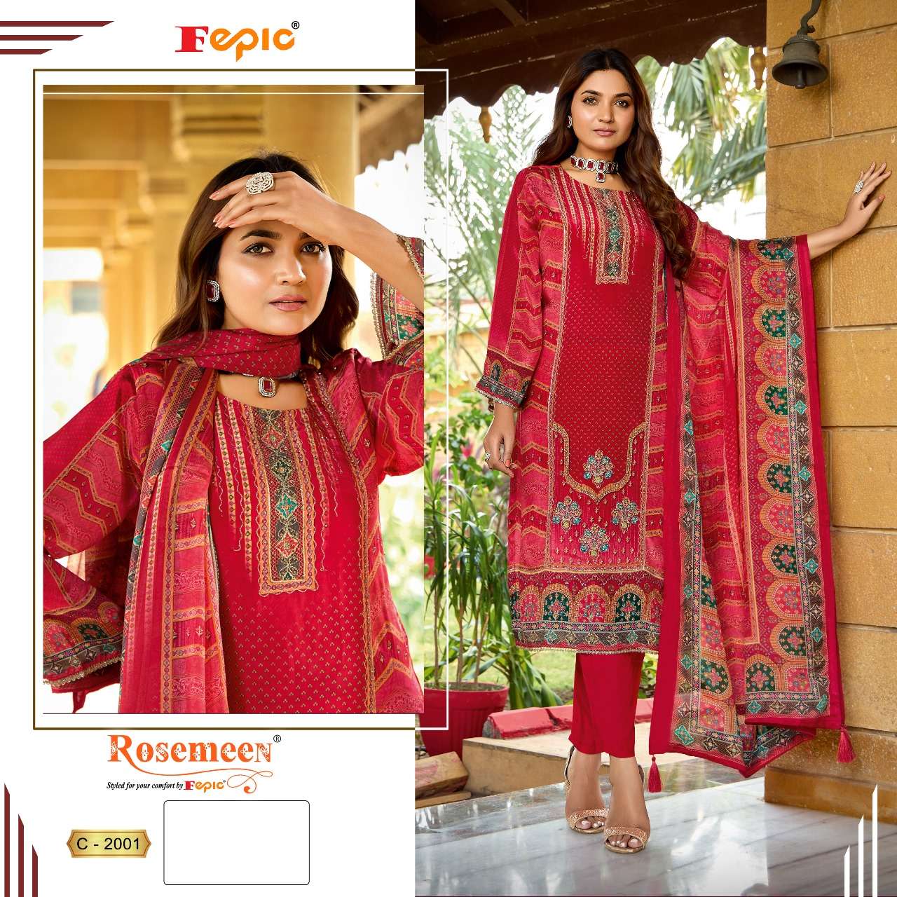 Buy Online ROSEMEEN D NO 2001 by FEPIC CRAPE suit collection manufacturer surat 1 Pcs of Full Catalogue at Wholesale Price. Looking for ROSEMEEN D NO 2001 by FEPIC CRAPE suit collection manufacturer surat Full Catalouge at Best Price? Buy Now ROSEMEEN D NO 2001 by FEPIC CRAPE suit collection manufacturer surat at Wholesale Rate of Rs 1571 with Total 1 Pcs from authroized dealer and supplier of FEPIC Brand. Cost of Each piece is just only Rs 1571 which is very low and affordable price to resale the product in your retail store ,This is Surat based Wholesale Supplier & Dealer of FEPIC Brand. Click on Brand name to Know more about FEPIC Brand's products.Call or Whatsapp on 9898838984 for booking or enquiry