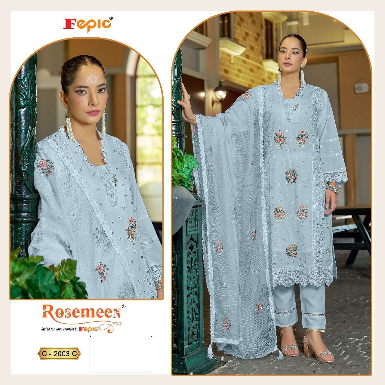 Buy Online ROSEMEEN D NO 2003 By FEPIC CAMBRIC cotton suit collection manufacturer surat 3 Pcs of Full Catalogue at Wholesale Price. Looking for ROSEMEEN D NO 2003 By FEPIC CAMBRIC cotton suit collection manufacturer surat Full Catalouge at Best Price? Buy Now ROSEMEEN D NO 2003 By FEPIC CAMBRIC cotton suit collection manufacturer surat at Wholesale Rate of Rs 3933 with Total 3 Pcs from authroized dealer and supplier of FEPIC Brand. Cost of Each piece is just only Rs 1311 which is very low and affordable price to resale the product in your retail store ,This is Surat based Wholesale Supplier & Dealer of FEPIC Brand. Click on Brand name to Know more about FEPIC Brand's products.Call or Whatsapp on 9898838984 for booking or enquiry