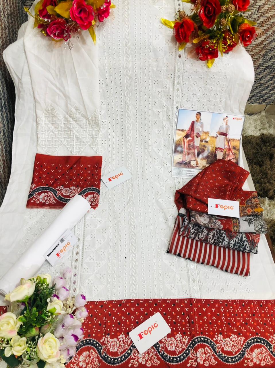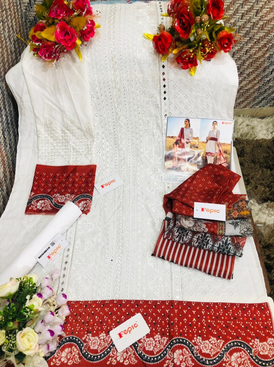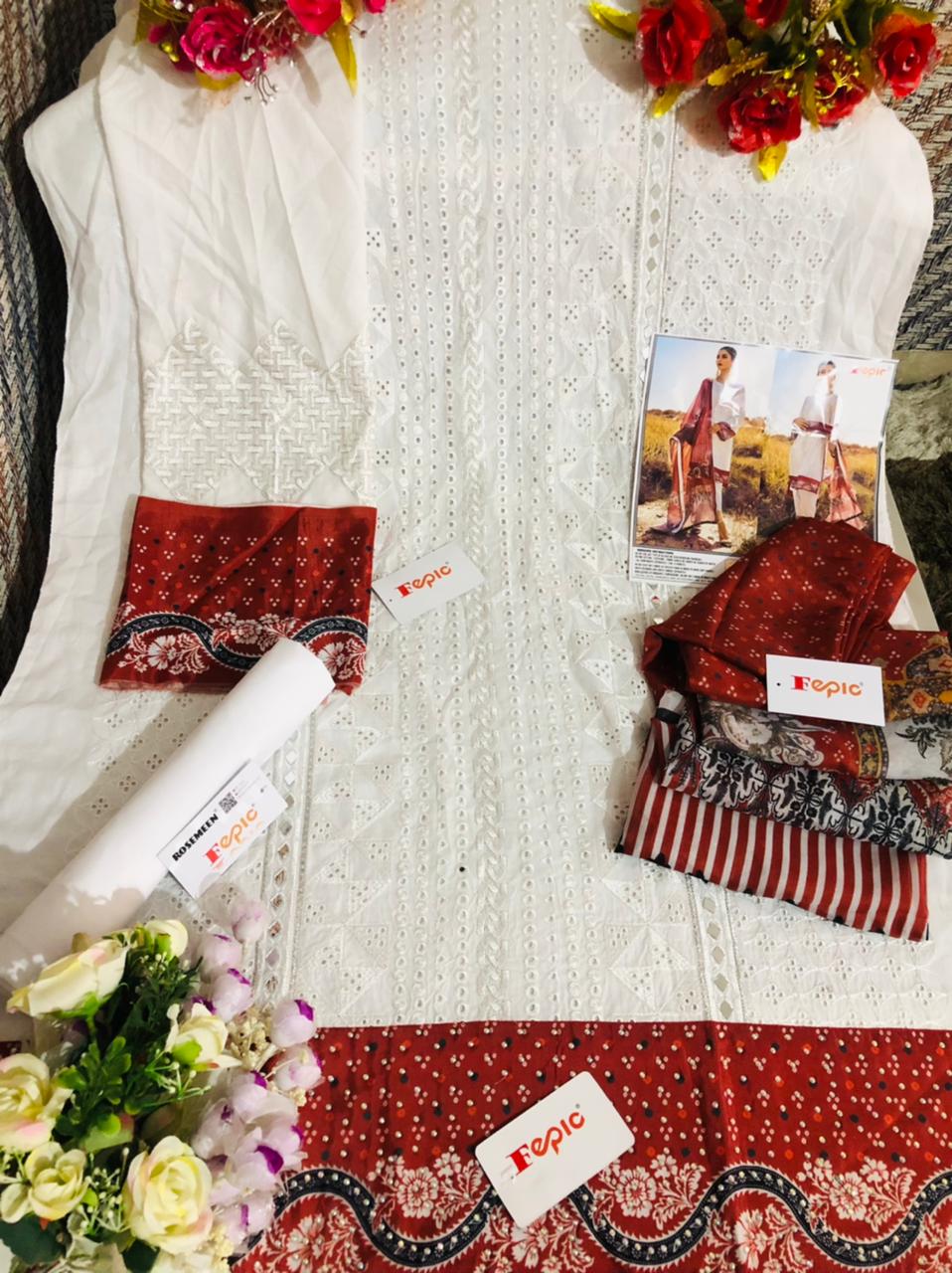 *BRAND NAME :-* FEPIC *CATALOUGE NAME :-* ROSEMEEN *D. NO :-* 2116 *Top :-* PURE COTTON EMBROIDERED WITH HANDWORK *Dupatta :-* TUBBY SILK DIGITAL PRINTED *Bottom :-* SEMI LAWN *RATE :-* 1099/- 100+single |