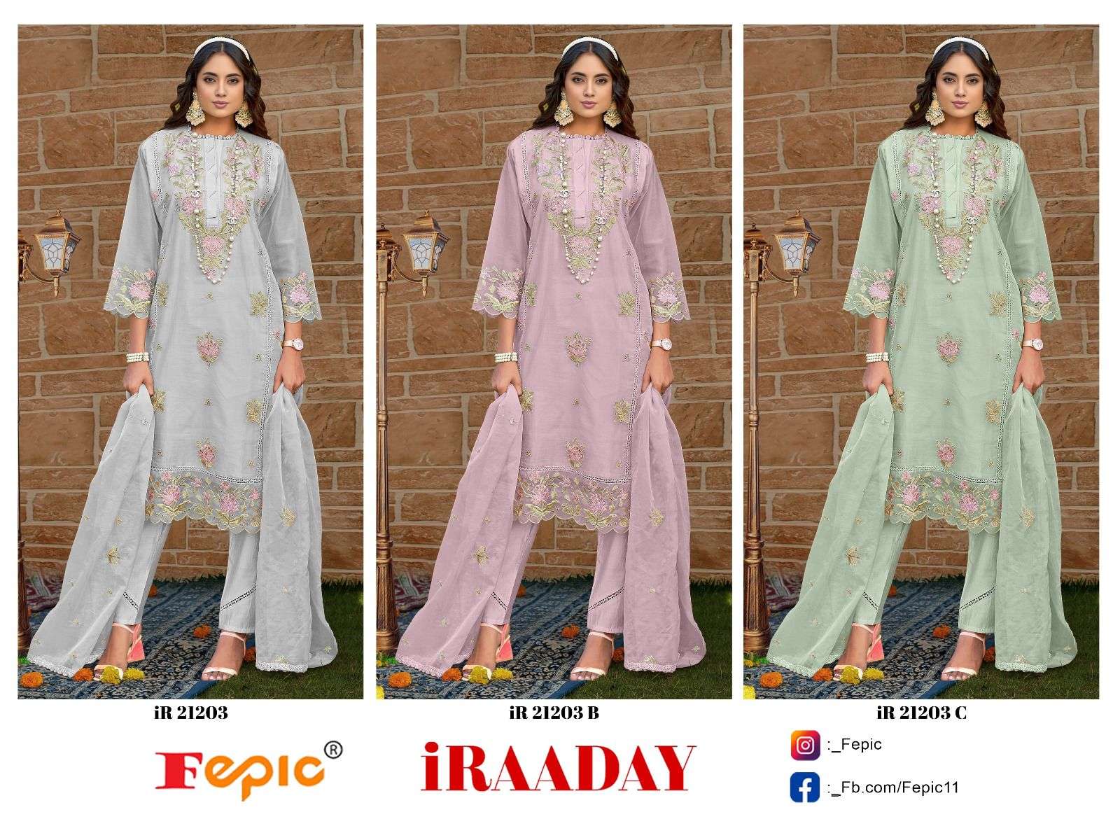 Buy Online ROSEMEEN D NO 21203 by FEPIC ORGANZA suit collection manufacturer Surat 3 Pcs of Full Catalogue at Wholesale Price. Looking for ROSEMEEN D NO 21203 by FEPIC ORGANZA suit collection manufacturer Surat Full Catalouge at Best Price? Buy Now ROSEMEEN D NO 21203 by FEPIC ORGANZA suit collection manufacturer Surat at Wholesale Rate of Rs 3153 with Total 3 Pcs from authroized dealer and supplier of FEPIC Brand. Cost of Each piece is just only Rs 1051 which is very low and affordable price to resale the product in your retail store ,This is Surat based Wholesale Supplier & Dealer of FEPIC Brand. Click on Brand name to Know more about FEPIC Brand's products.Call or Whatsapp on 9898838984 for booking or enquiry