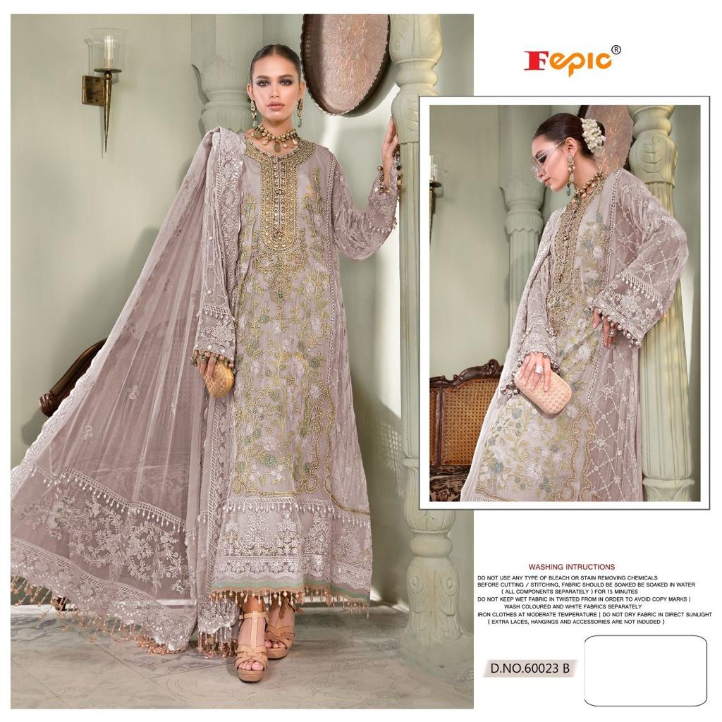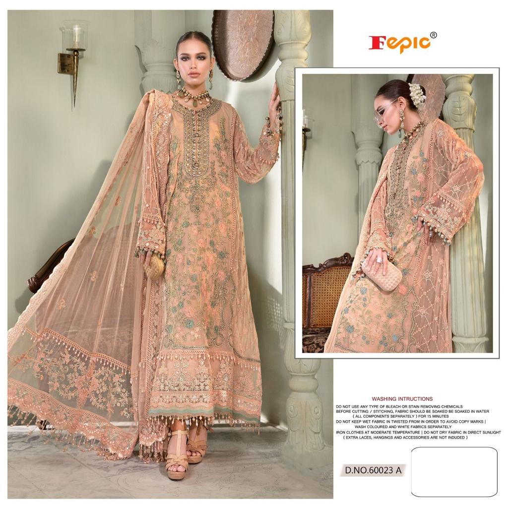 Buy Online Rosemeen D No 60023 By Fepic Designer Georgette Suit 4 Pcs of Full Catalogue at Wholesale Price. Looking for Rosemeen D No 60023 By Fepic Designer Georgette Suit Full Catalouge at Best Price? Buy Now Rosemeen D No 60023 By Fepic Designer Georgette Suit at Wholesale Rate of Rs 5232 with Total 4 Pcs from authroized dealer and supplier of FEPIC Brand. Cost of Each piece is just only Rs 1308 which is very low and affordable price to resale the product in your retail store ,This is Surat based Wholesale Supplier & Dealer of FEPIC Brand. Click on Brand name to Know more about FEPIC Brand's products.Call or Whatsapp on 9898838984 for booking or enquiry