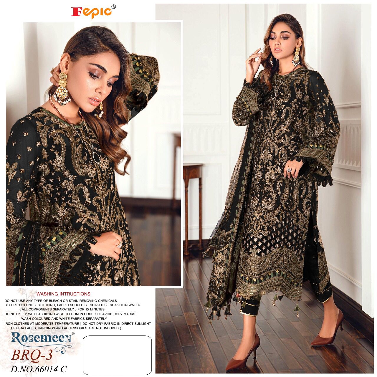 Buy Online Rosemeen D No 66014 Color By Fepic Heavy Embroidery Suit 3 Pcs of Full Catalogue at Wholesale Price. Looking for Rosemeen D No 66014 Color By Fepic Heavy Embroidery Suit Full Catalouge at Best Price? Buy Now Rosemeen D No 66014 Color By Fepic Heavy Embroidery Suit at Wholesale Rate of Rs 4257 with Total 3 Pcs from authroized dealer and supplier of FEPIC Brand. Cost of Each piece is just only Rs 1419 which is very low and affordable price to resale the product in your retail store ,This is Surat based Wholesale Supplier & Dealer of FEPIC Brand. Click on Brand name to Know more about FEPIC Brand's products.Call or Whatsapp on 9898838984 for booking or enquiry