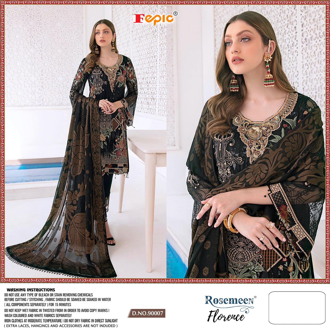 Buy Online Rosemeen D No 90007 Fepic Georgette Embroidered Collection 5 Pcs of Full Catalogue at Wholesale Price. Looking for Rosemeen D No 90007 Fepic Georgette Embroidered Collection Full Catalouge at Best Price? Buy Now Rosemeen D No 90007 Fepic Georgette Embroidered Collection at Wholesale Rate of Rs 5795 with Total 5 Pcs from authroized dealer and supplier of FEPIC Brand. Cost of Each piece is just only Rs 1159 which is very low and affordable price to resale the product in your retail store ,This is Surat based Wholesale Supplier & Dealer of FEPIC Brand. Click on Brand name to Know more about FEPIC Brand's products.Call or Whatsapp on 9898838984 for booking or enquiry