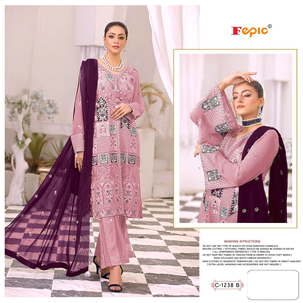 Buy Online Rosemeen D No C 1238 By Fepic Georgette Pakistani Suits 3 Pcs of Full Catalogue at Wholesale Price. Looking for Rosemeen D No C 1238 By Fepic Georgette Pakistani Suits Full Catalouge at Best Price? Buy Now Rosemeen D No C 1238 By Fepic Georgette Pakistani Suits at Wholesale Rate of Rs 4107 with Total 3 Pcs from authroized dealer and supplier of FEPIC Brand. Cost of Each piece is just only Rs 1369 which is very low and affordable price to resale the product in your retail store ,This is Surat based Wholesale Supplier & Dealer of FEPIC Brand. Click on Brand name to Know more about FEPIC Brand's products.Call or Whatsapp on 9898838984 for booking or enquiry