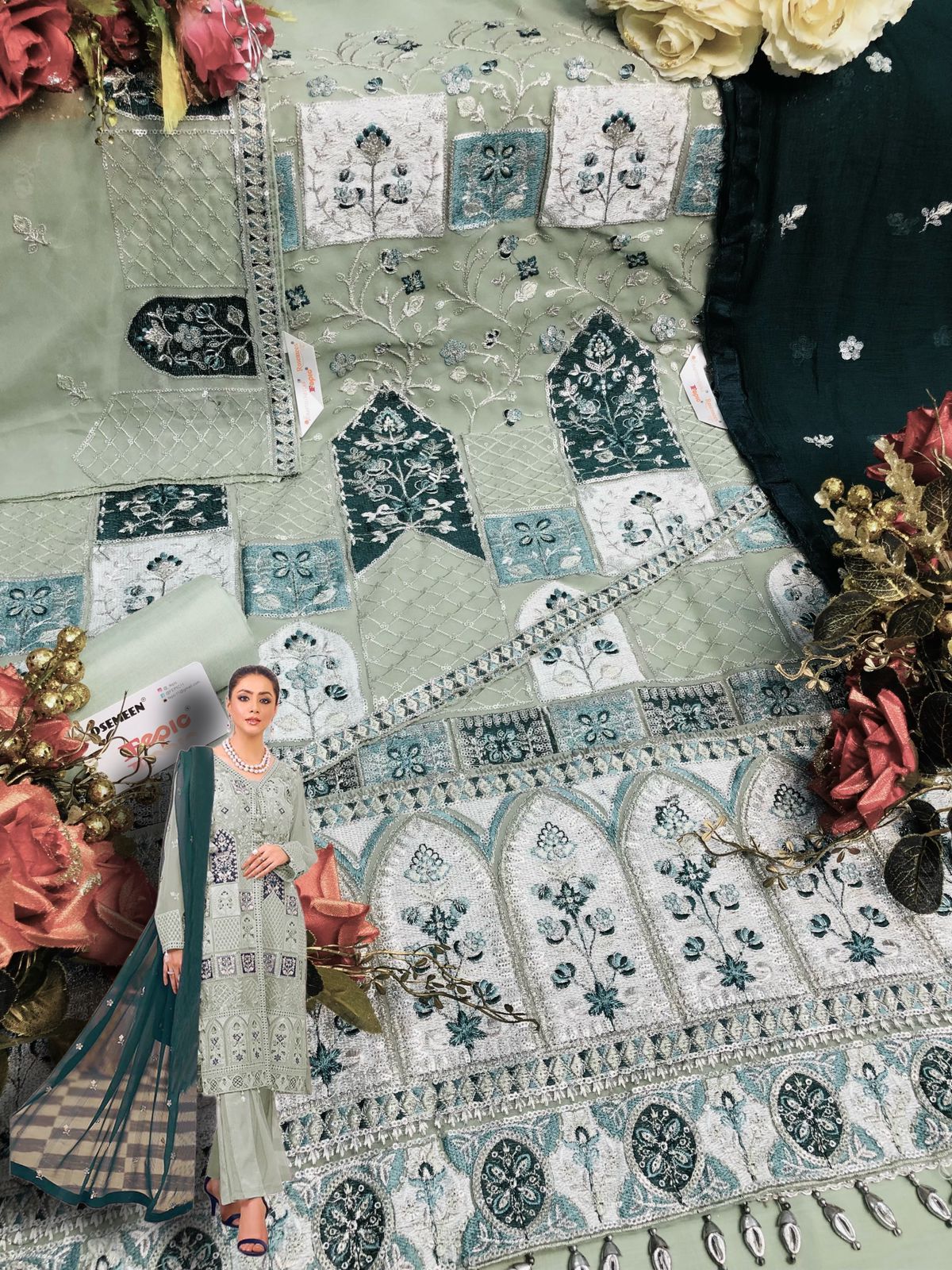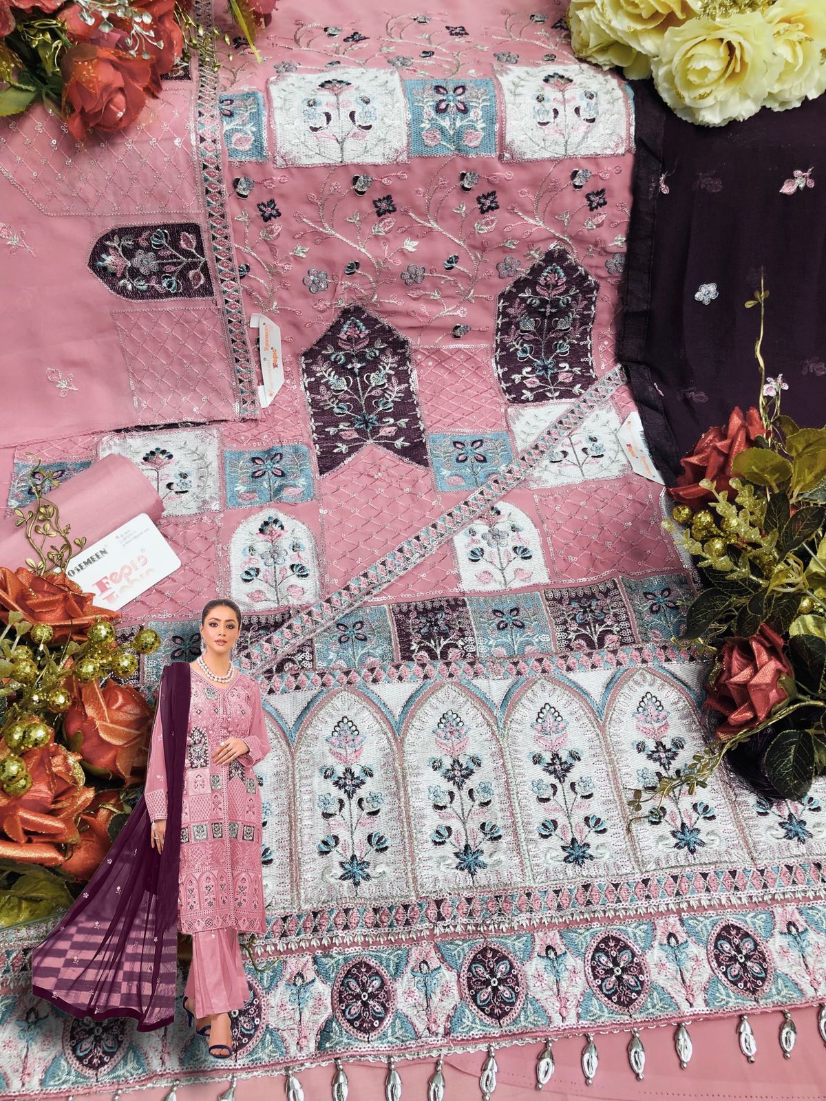 *_BRAND NAME_* :- FEPIC *_CATALOUGE NAME_* :- ROSEMEEN *_D NO_* :- C 1238 ( 3 pcs set ) *_TOP_* :- GEORGETTE EMBROIDERED *_DUPATTA_* :- NET EMBROIDERED WITH HANDWORKED *_BOTTOM_* :- SANTOON WITH EMBROIDERED PAYAL BUNCHES *_INNER_* :- SANTOON *Rate :-* 1369/- Gst ship extra Single avaialable 100+single |