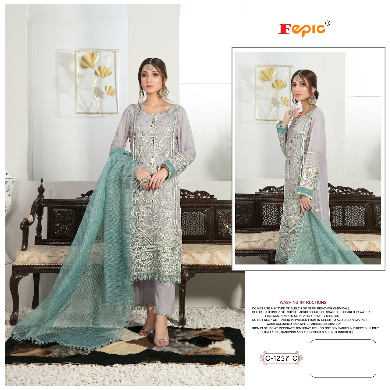 _*BRAND NAME*_:- FEPIC _*CATALOUGE NAME*_:- ROSEMEEN _*D NO*_:- C 1257 ( 4 pcs set ) _*Top*_:- GEORGETTE EMBROIDERED WITH *ALL CRYSTAL EMBLISHMENT (NECK LATKAN , DAMAN LATKN , DUPATTA LATKAN) * _*Dupatta*_:- NET EMBROIDERED _*Bottom*_:- SANTOON _*INNER*_:- SANTOON _* RATE*_:-1279/- Gst ship extra 100+single |