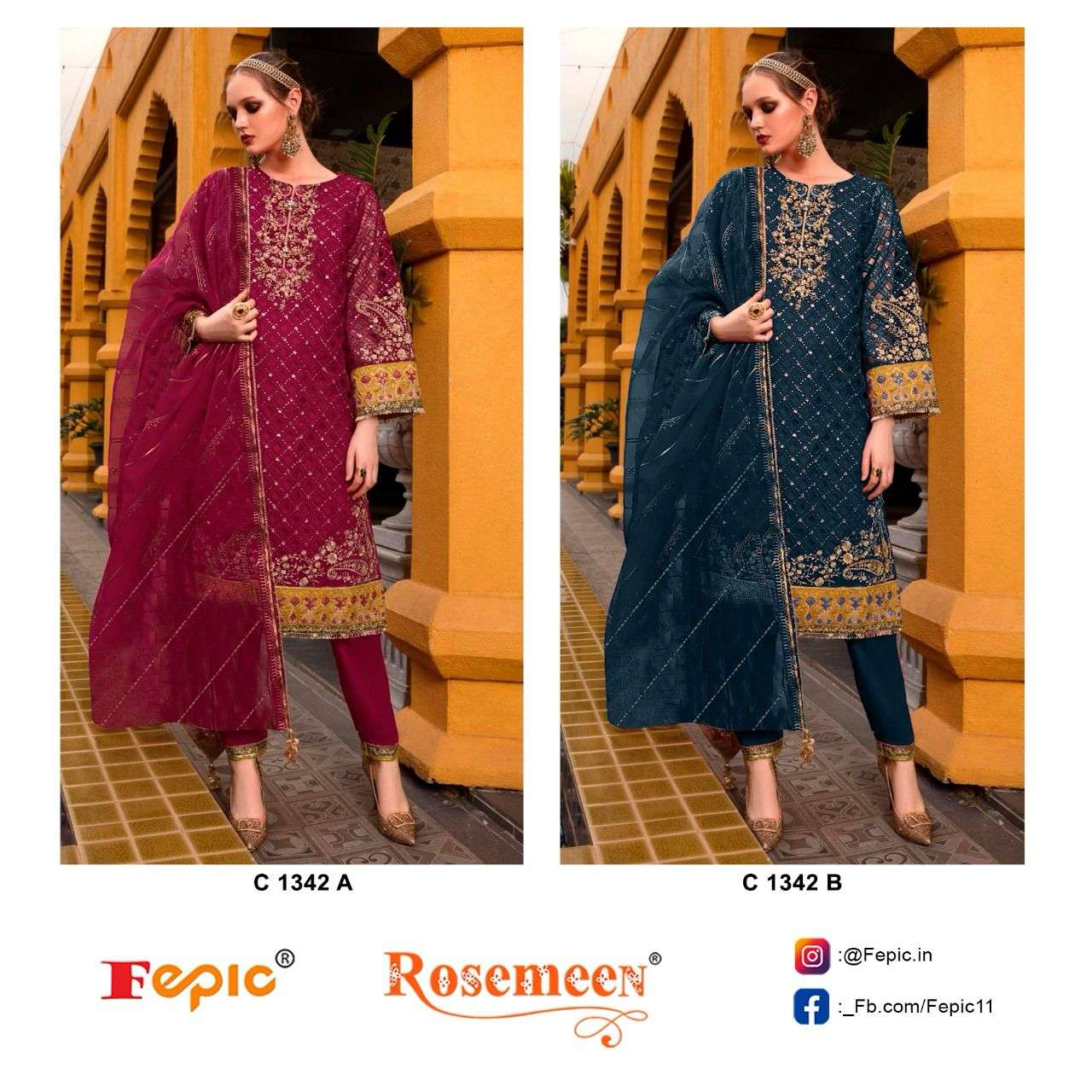 ROSEMEEN D NO C 1342 by FEPIC ORGANZA suit collection manufacturer surat