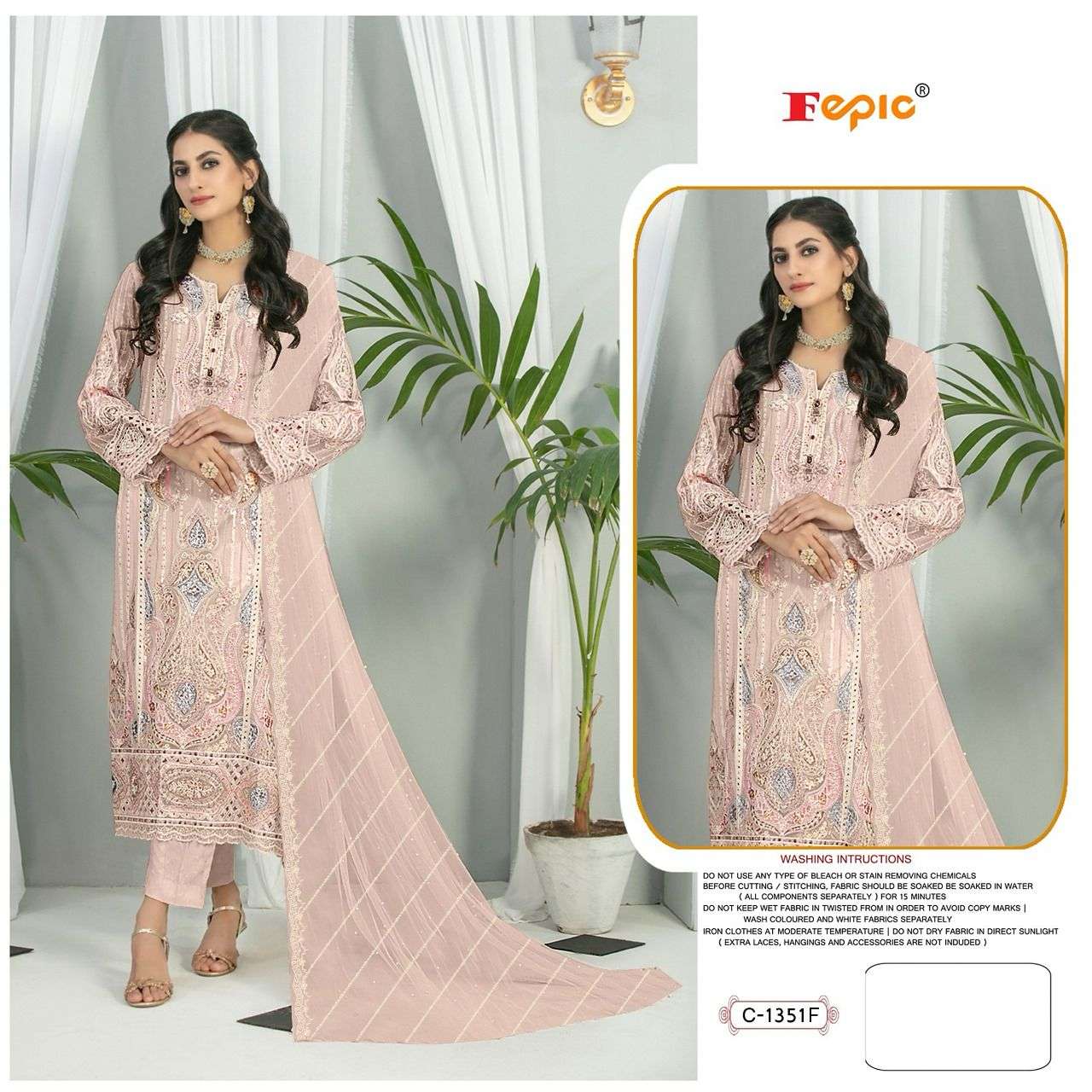 _*BRAND NAME*_:- FEPIC _*CATALOUGE NAME*_:- ROSEMEEN _*D NO*_:- C 1351 _*Top*_:- ORGANZA EMBROIDERED _*Dupatta*_:- NET HEAVY EMBROIDERED _*Bottom*_:- SANTOON _*INNER*_:- SANTOON _* RATE*_:- 1379/- |