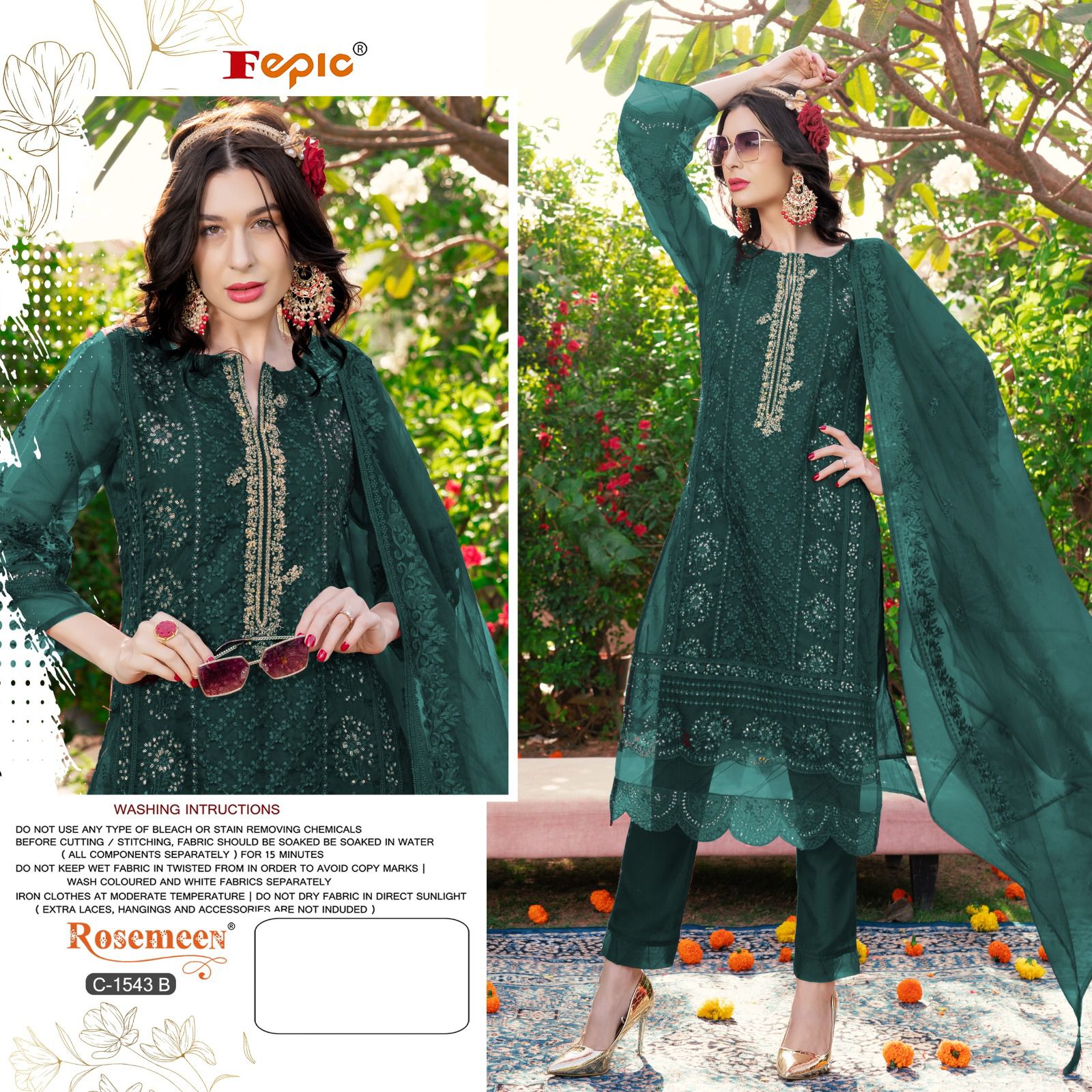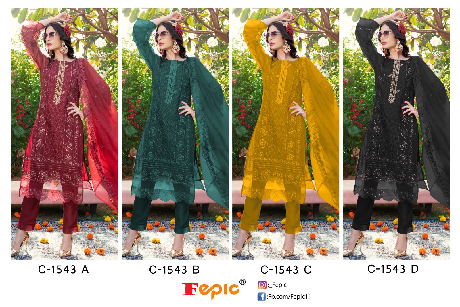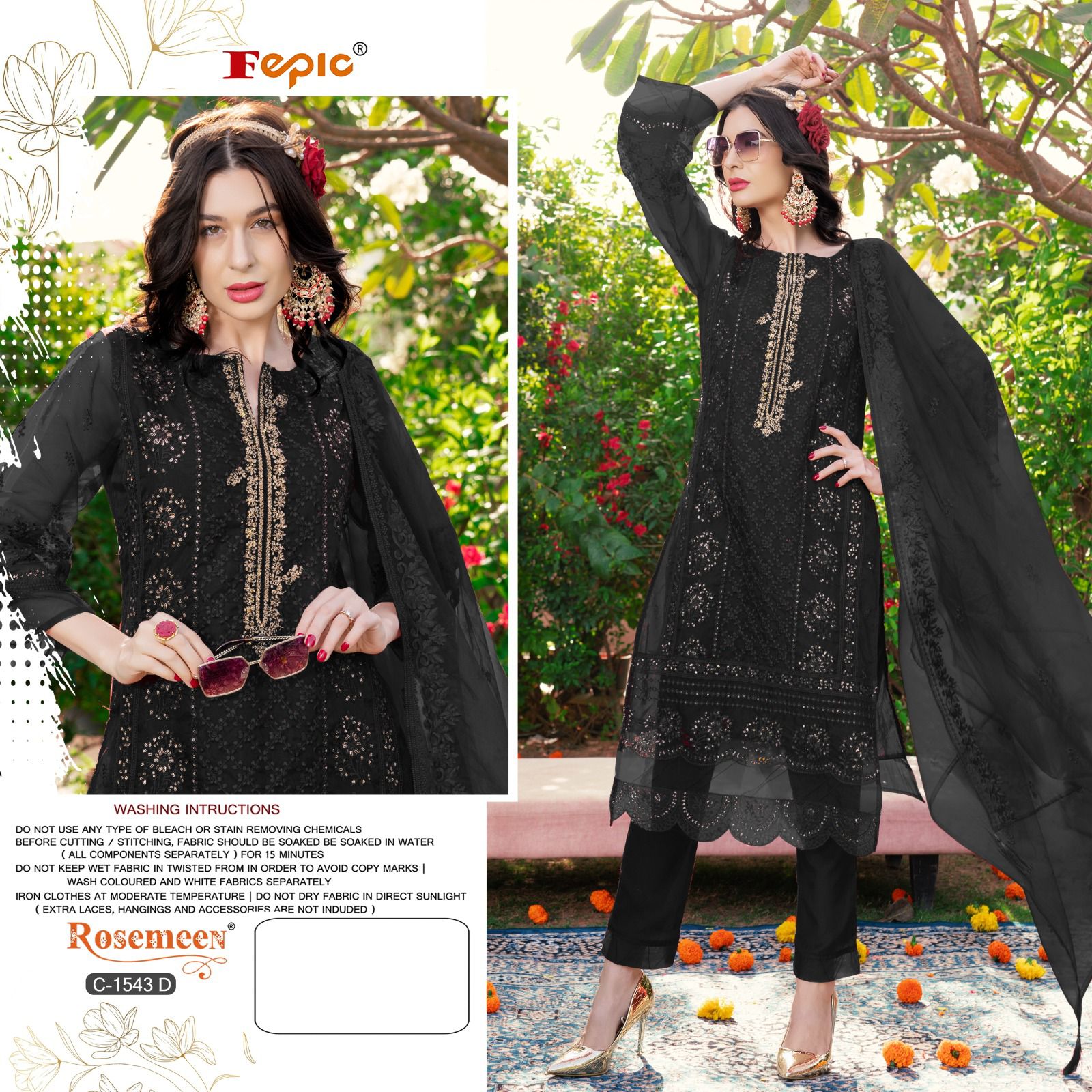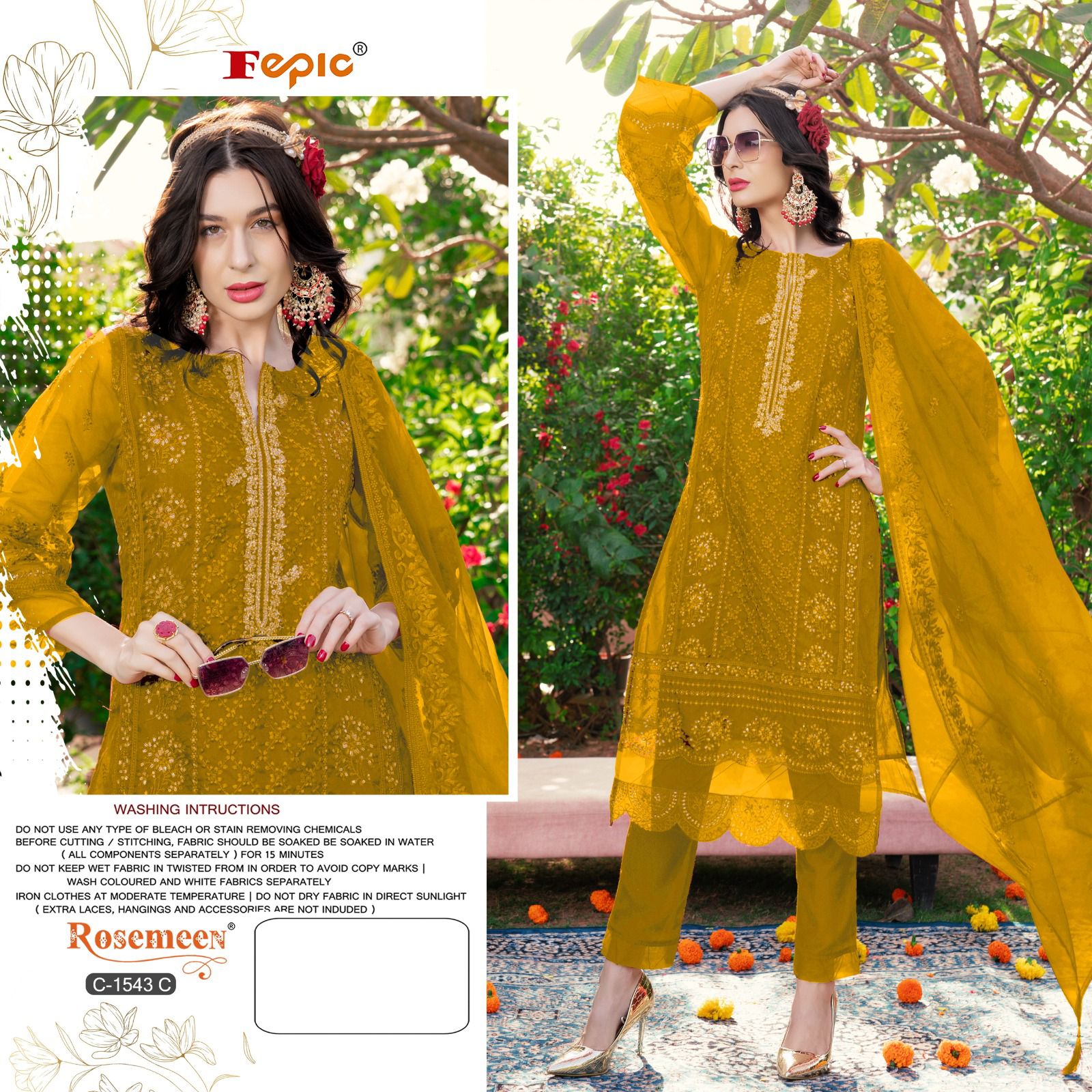Buy Online Rosemeen D No C 1543 By Fepic Organza Embroidered With Handwork Suits 4 Pcs of Full Catalogue at Wholesale Price. Looking for Rosemeen D No C 1543 By Fepic Organza Embroidered With Handwork Suits Full Catalouge at Best Price? Buy Now Rosemeen D No C 1543 By Fepic Organza Embroidered With Handwork Suits at Wholesale Rate of Rs 5124 with Total 4 Pcs from authroized dealer and supplier of FEPIC Brand. Cost of Each piece is just only Rs 1281 which is very low and affordable price to resale the product in your retail store ,This is Surat based Wholesale Supplier & Dealer of FEPIC Brand. Click on Brand name to Know more about FEPIC Brand's products.Call or Whatsapp on 9898838984 for booking or enquiry