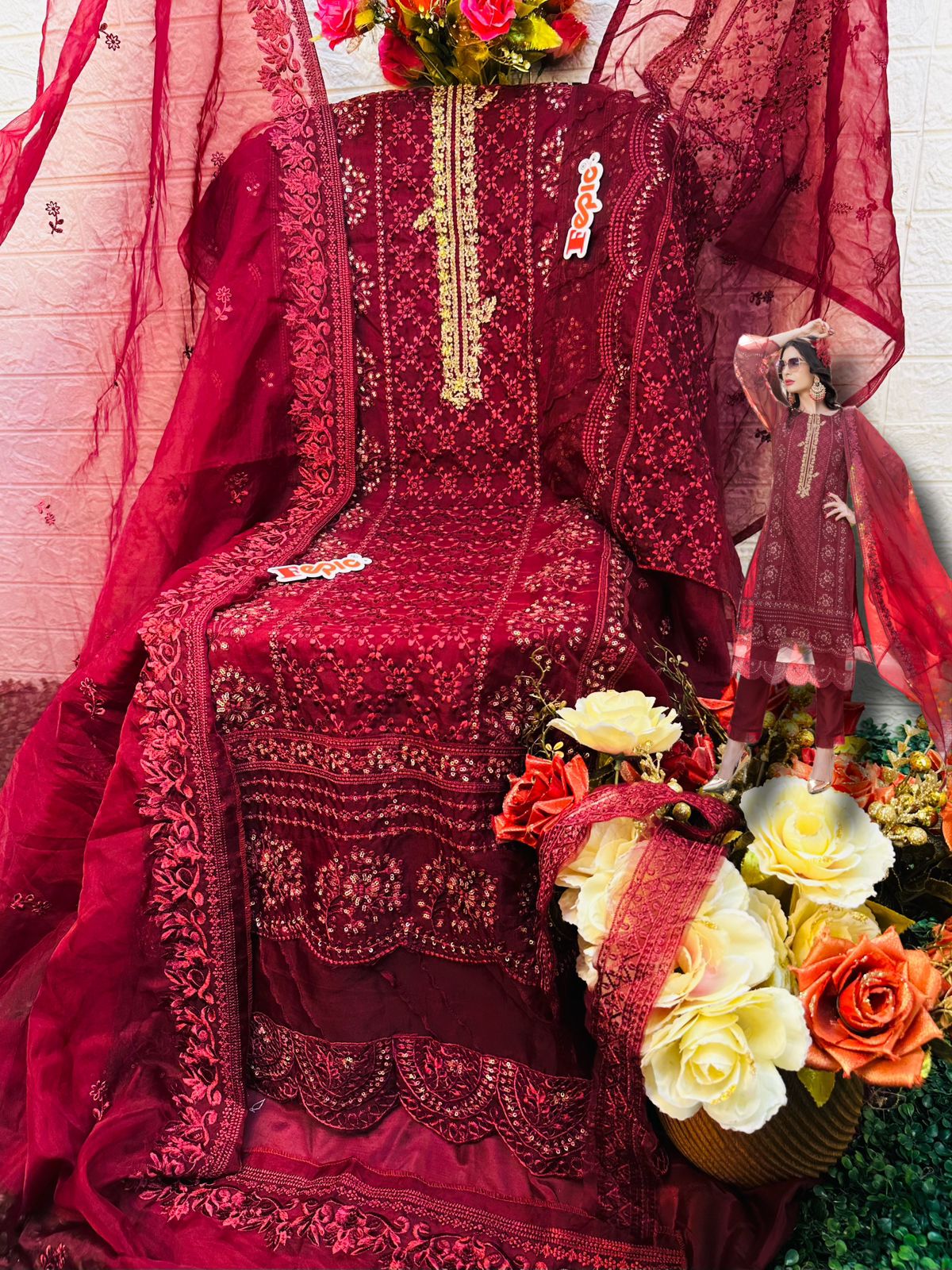 Rosemeen D No C 1543 By Fepic Organza Embroidered With Handwork Suits