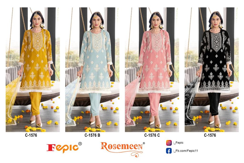 Buy Online Rosemeen D No C 1576 By Fepic Pakistani Concept 4 Pcs of Full Catalogue at Wholesale Price. Looking for Rosemeen D No C 1576 By Fepic Pakistani Concept Full Catalouge at Best Price? Buy Now Rosemeen D No C 1576 By Fepic Pakistani Concept at Wholesale Rate of Rs 4740 with Total 4 Pcs from authroized dealer and supplier of FEPIC Brand. Cost of Each piece is just only Rs 1185 which is very low and affordable price to resale the product in your retail store ,This is Surat based Wholesale Supplier & Dealer of FEPIC Brand. Click on Brand name to Know more about FEPIC Brand's products.Call or Whatsapp on 9898838984 for booking or enquiry