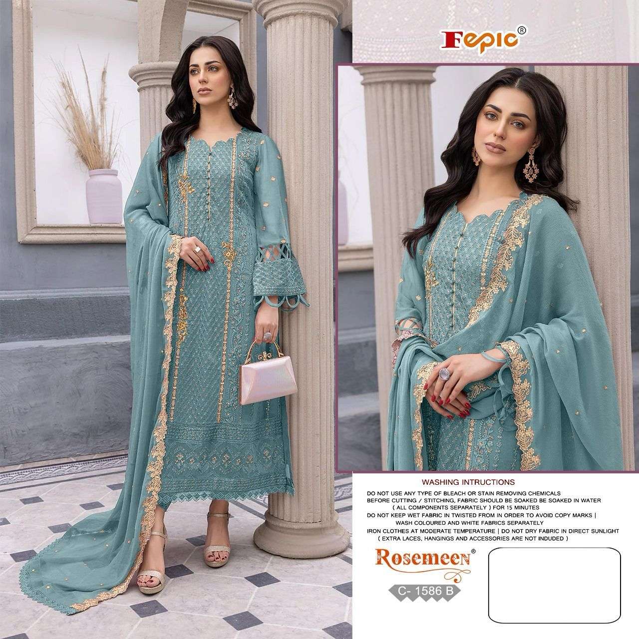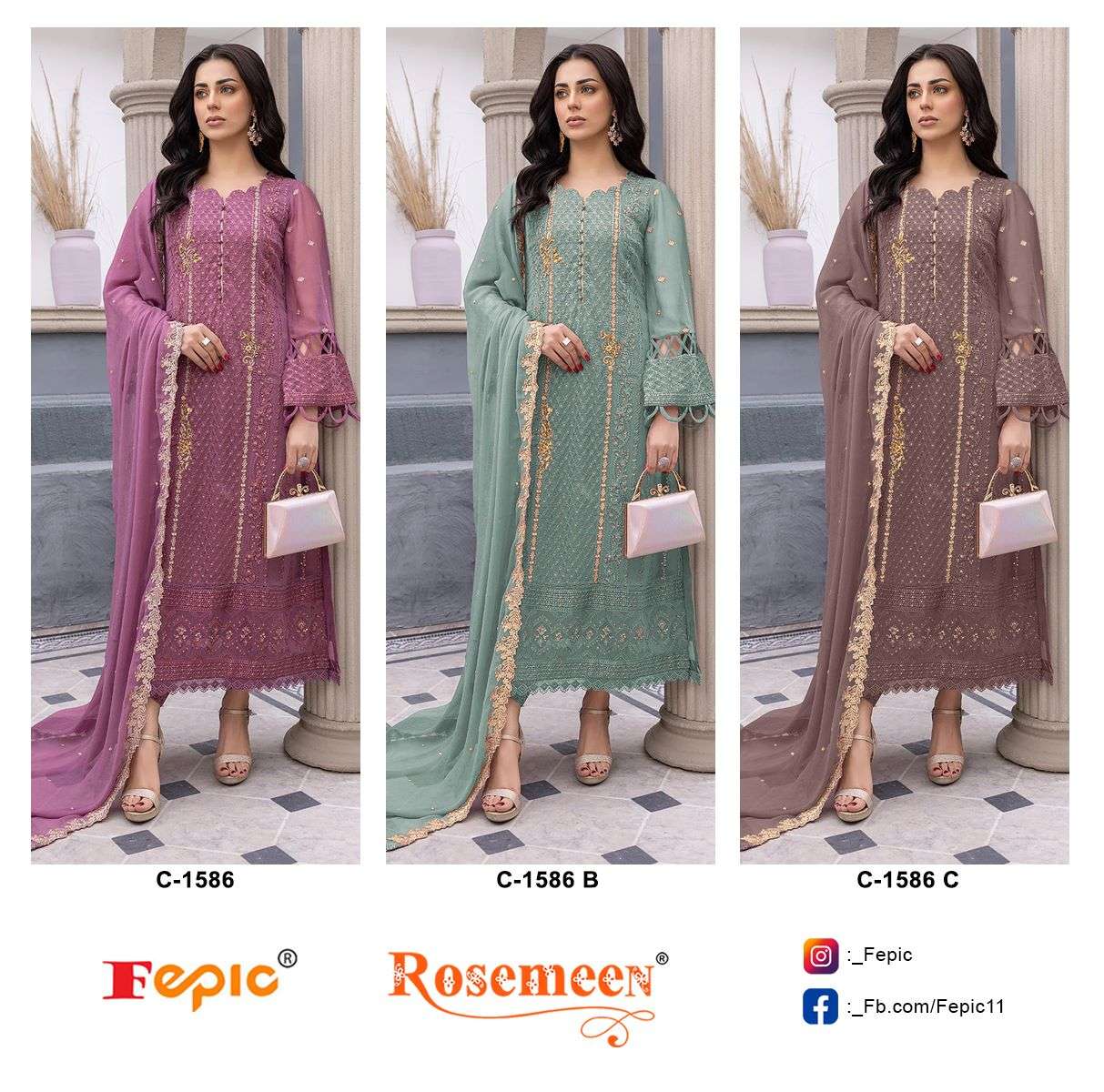 Buy Online ROSEMEEN D NO C 1586 by FEPIC GEORGETTE Suit collection manufacturer surat 3 Pcs of Full Catalogue at Wholesale Price. Looking for ROSEMEEN D NO C 1586 by FEPIC GEORGETTE Suit collection manufacturer surat Full Catalouge at Best Price? Buy Now ROSEMEEN D NO C 1586 by FEPIC GEORGETTE Suit collection manufacturer surat at Wholesale Rate of Rs 3597 with Total 3 Pcs from authroized dealer and supplier of FEPIC Brand. Cost of Each piece is just only Rs 1199 which is very low and affordable price to resale the product in your retail store ,This is Surat based Wholesale Supplier & Dealer of FEPIC Brand. Click on Brand name to Know more about FEPIC Brand's products.Call or Whatsapp on 9898838984 for booking or enquiry