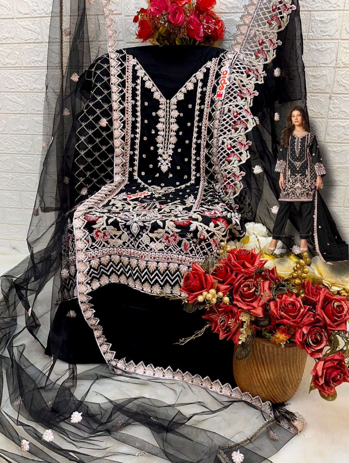_*BRAND NAME*_:- FEPIC _*CATALOUGE NAME*_:- ROSEMEEN _*D NO*_:- C 1633 _*Top*_:- ORGANZA EMBROIDERED WITH HEAVY PEARL AND HAND WORK _*Dupatta*_:- ORGANZA EMBROIDERED _*Bottom*_:- SANTOON _*INNER*_:- SANTOON _* RATE*_:- 1281/- |