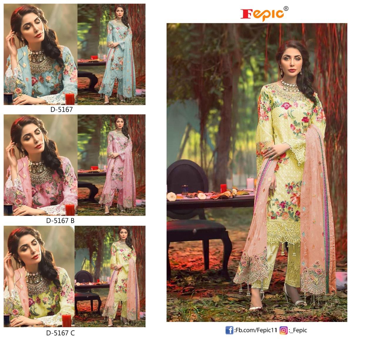 Buy Online Rosemeen D No D 5167 By Fepic Suit Single And Set Stockiest And Supplier From Surat 3 Pcs of Full Catalogue at Wholesale Price. Looking for Rosemeen D No D 5167 By Fepic Suit Single And Set Stockiest And Supplier From Surat Full Catalouge at Best Price? Buy Now Rosemeen D No D 5167 By Fepic Suit Single And Set Stockiest And Supplier From Surat at Wholesale Rate of Rs 3963 with Total 3 Pcs from authroized dealer and supplier of FEPIC Brand. Cost of Each piece is just only Rs 1321 which is very low and affordable price to resale the product in your retail store ,This is Surat based Wholesale Supplier & Dealer of FEPIC Brand. Click on Brand name to Know more about FEPIC Brand's products.Call or Whatsapp on 9898838984 for booking or enquiry