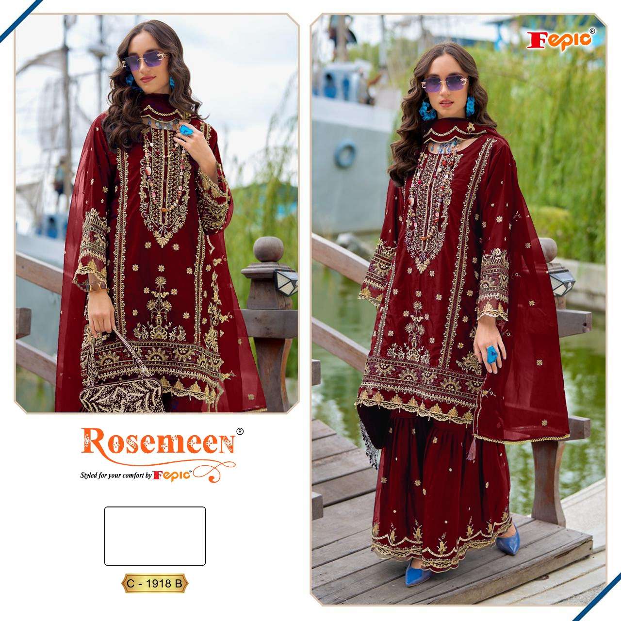 ROSEMEEN D NO1918 By FEPIC ORGANZA suit collection manufacturer surat