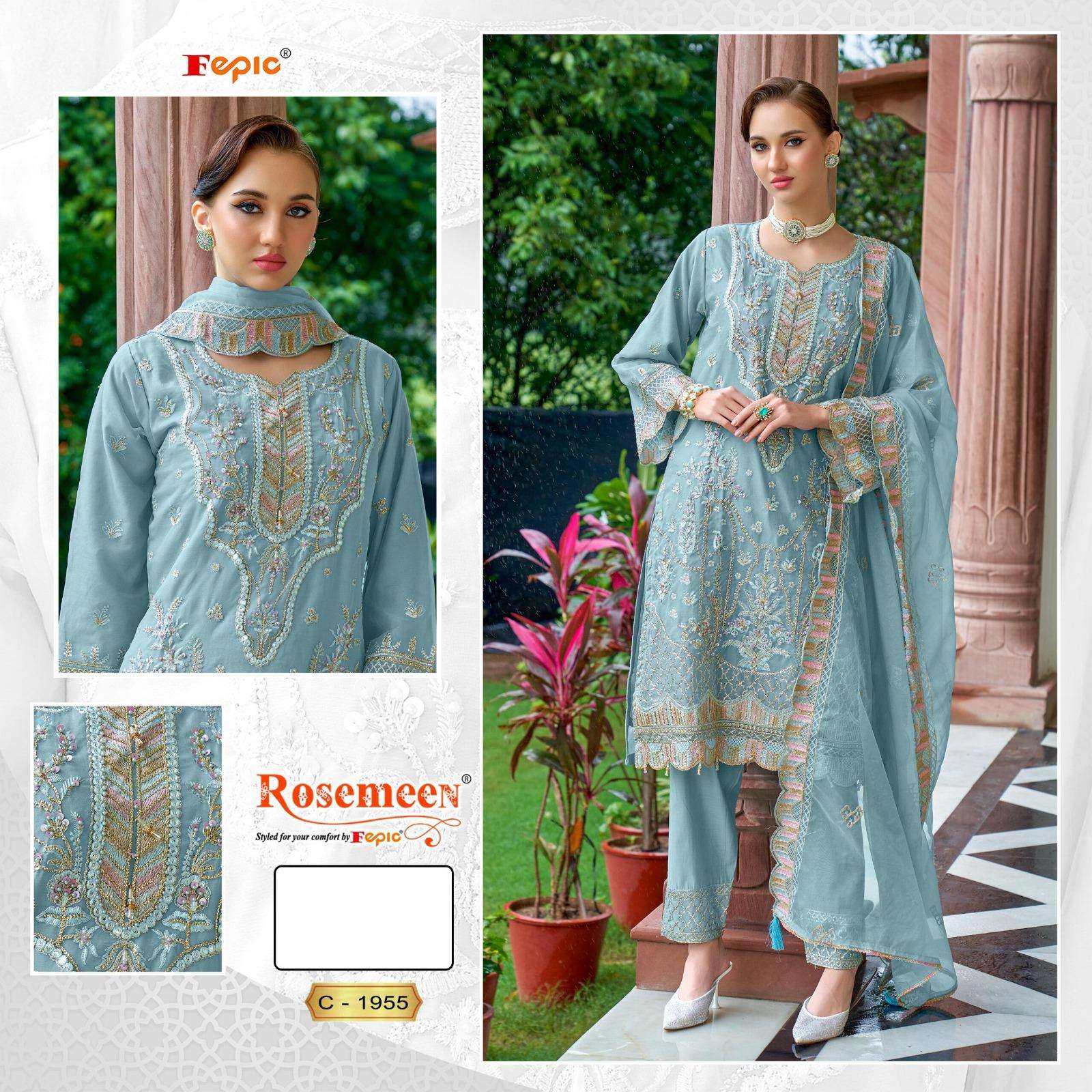 ROSEMEEN D NO1955 by FEPIC ORGANZA suit collection manufacturer surat