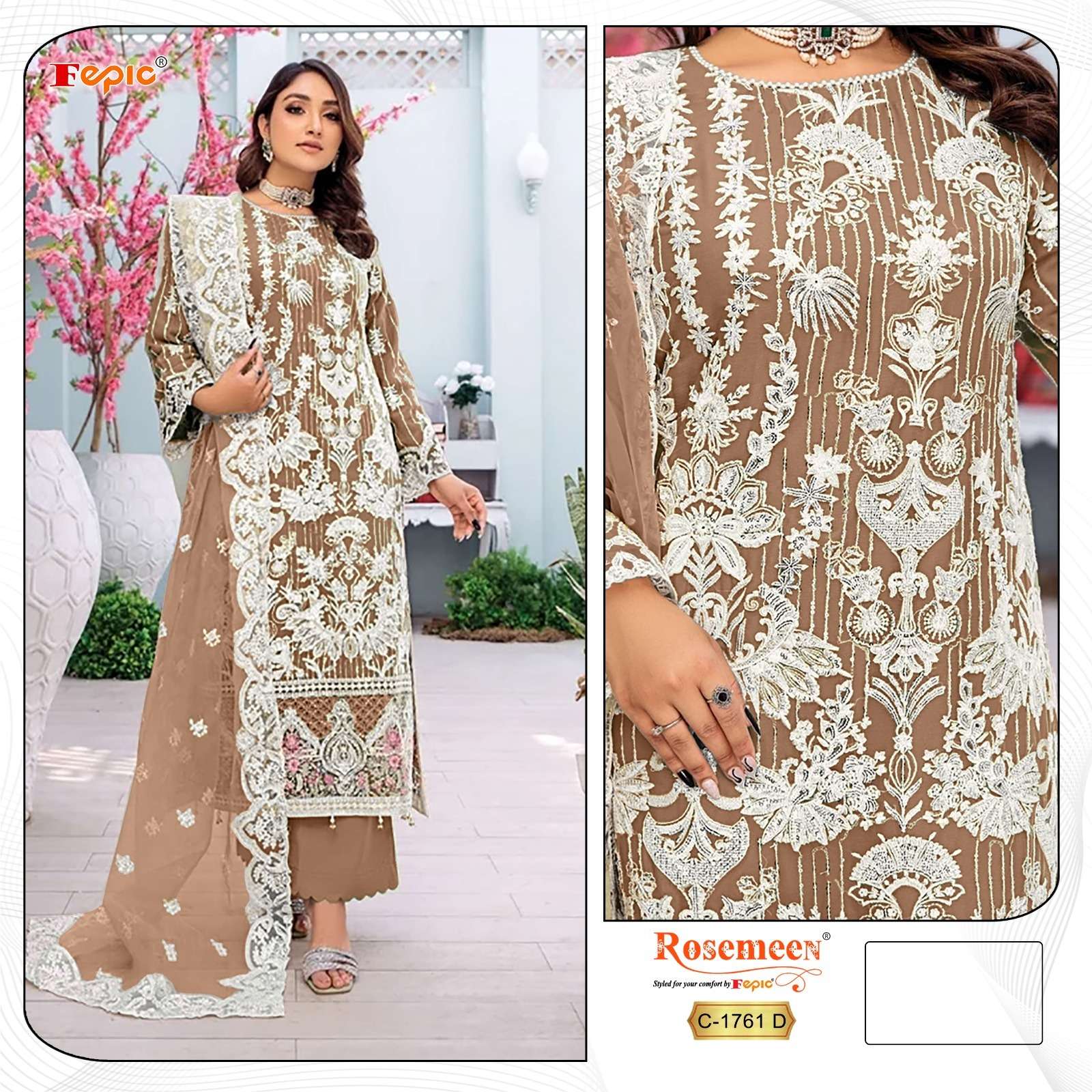 Buy Online Rosemeen nx D NO 1761 By FEPIC Organza suit collection manufacturer surat 4 Pcs of Full Catalogue at Wholesale Price. Looking for Rosemeen nx D NO 1761 By FEPIC Organza suit collection manufacturer surat Full Catalouge at Best Price? Buy Now Rosemeen nx D NO 1761 By FEPIC Organza suit collection manufacturer surat at Wholesale Rate of Rs 5284 with Total 4 Pcs from authroized dealer and supplier of FEPIC Brand. Cost of Each piece is just only Rs 1321 which is very low and affordable price to resale the product in your retail store ,This is Surat based Wholesale Supplier & Dealer of FEPIC Brand. Click on Brand name to Know more about FEPIC Brand's products.Call or Whatsapp on 9898838984 for booking or enquiry