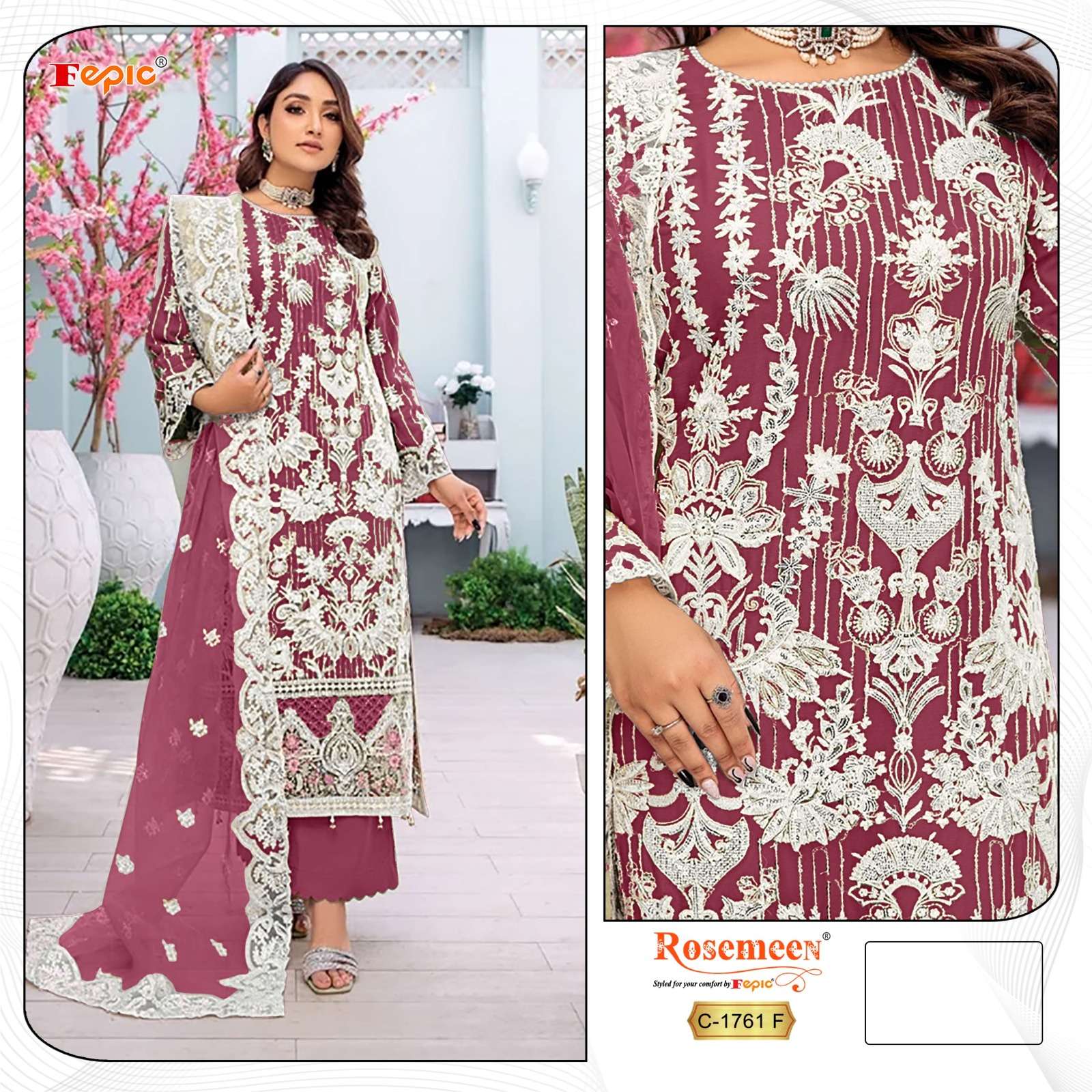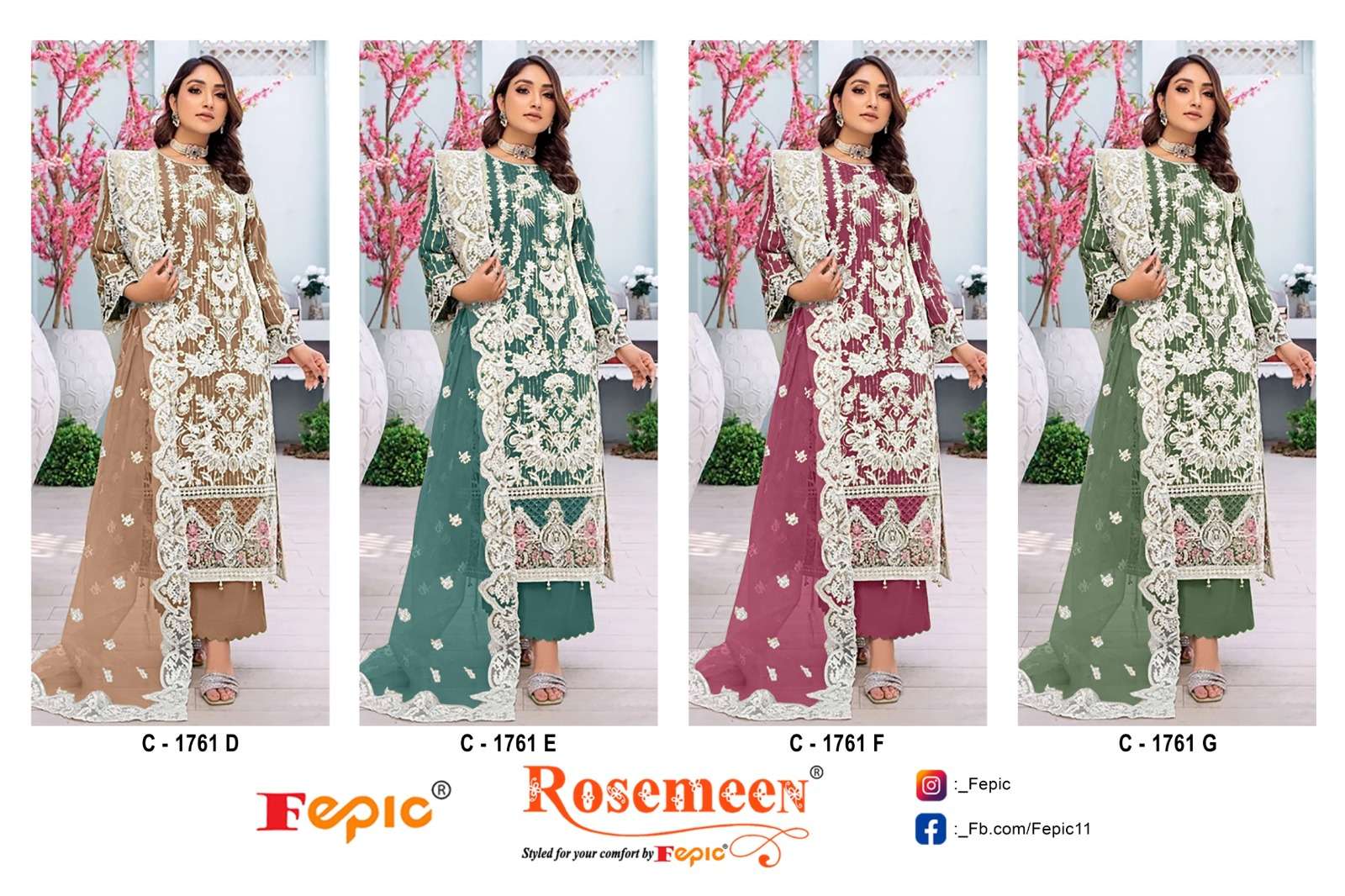 Rosemeen nx D NO 1761 By FEPIC Organza suit collection manufacturer surat