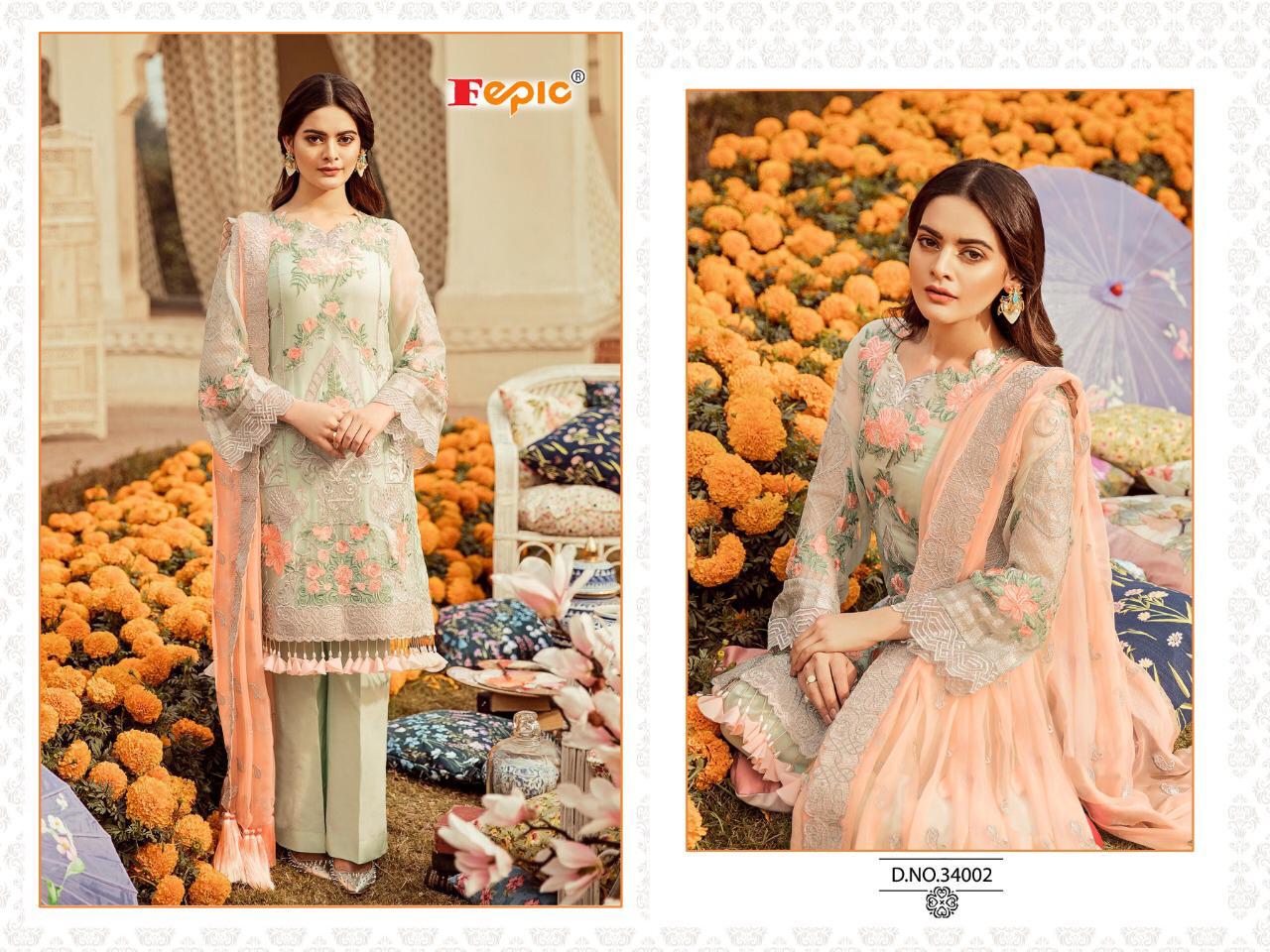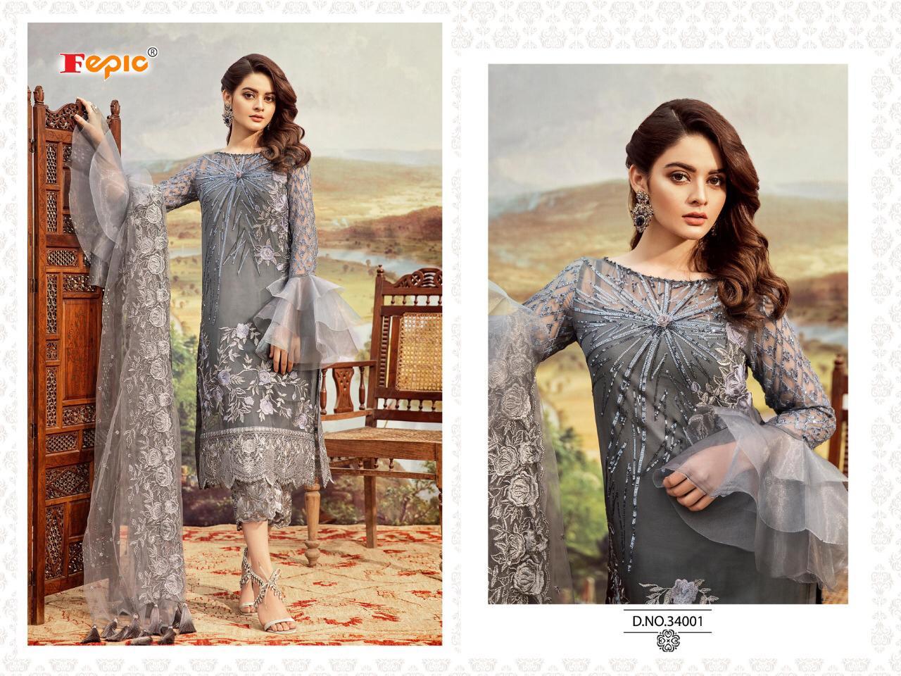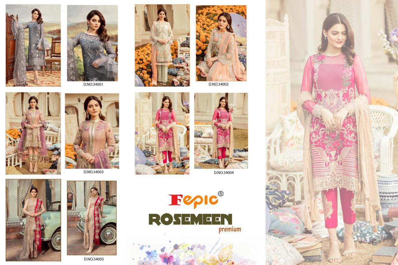 Buy Online Rosemeen Premium By Fepic 34001 Series Fancy Party Wear Pakistani Salwar Kameez Catlog Wholesaler Surat 5 Pcs of Full Catalogue at Wholesale Price. Looking for Rosemeen Premium By Fepic 34001 Series Fancy Party Wear Pakistani Salwar Kameez Catlog Wholesaler Surat Full Catalouge at Best Price? Buy Now Rosemeen Premium By Fepic 34001 Series Fancy Party Wear Pakistani Salwar Kameez Catlog Wholesaler Surat at Wholesale Rate of Rs 5995 with Total 5 Pcs from authroized dealer and supplier of FEPIC Brand. Cost of Each piece is just only Rs 1199 which is very low and affordable price to resale the product in your retail store ,This is Surat based Wholesale Supplier & Dealer of FEPIC Brand. Click on Brand name to Know more about FEPIC Brand's products.Call or Whatsapp on 9898838984 for booking or enquiry