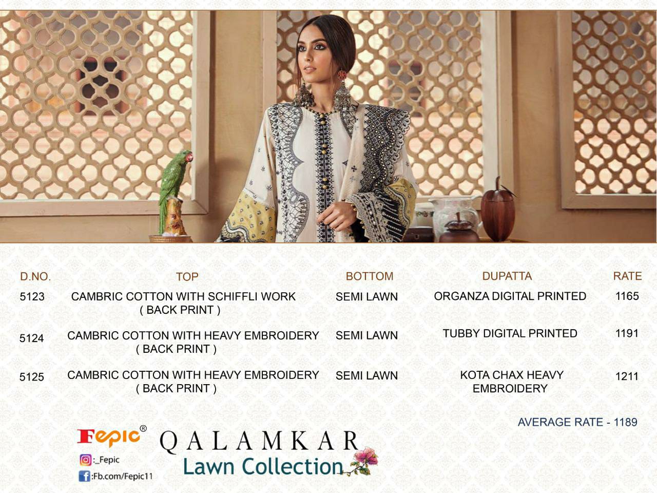 Buy Online Rosemeen Qalamkar Lawn Collection By Fepic Wholesaler Supplier From Surat 3 Pcs of Full Catalogue at Wholesale Price. Looking for Rosemeen Qalamkar Lawn Collection By Fepic Wholesaler Supplier From Surat Full Catalouge at Best Price? Buy Now Rosemeen Qalamkar Lawn Collection By Fepic Wholesaler Supplier From Surat at Wholesale Rate of Rs 3567 with Total 3 Pcs from authroized dealer and supplier of FEPIC Brand. Cost of Each piece is just only Rs 1189 which is very low and affordable price to resale the product in your retail store ,This is Surat based Wholesale Supplier & Dealer of FEPIC Brand. Click on Brand name to Know more about FEPIC Brand's products.Call or Whatsapp on 9898838984 for booking or enquiry
