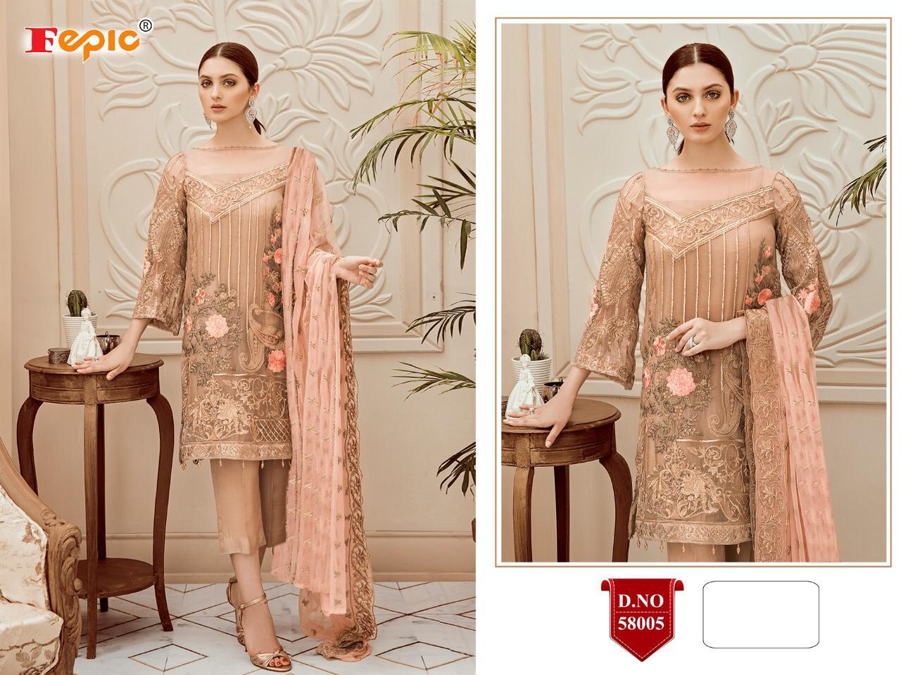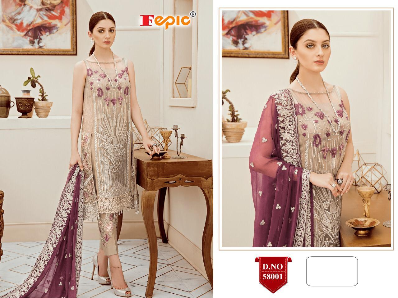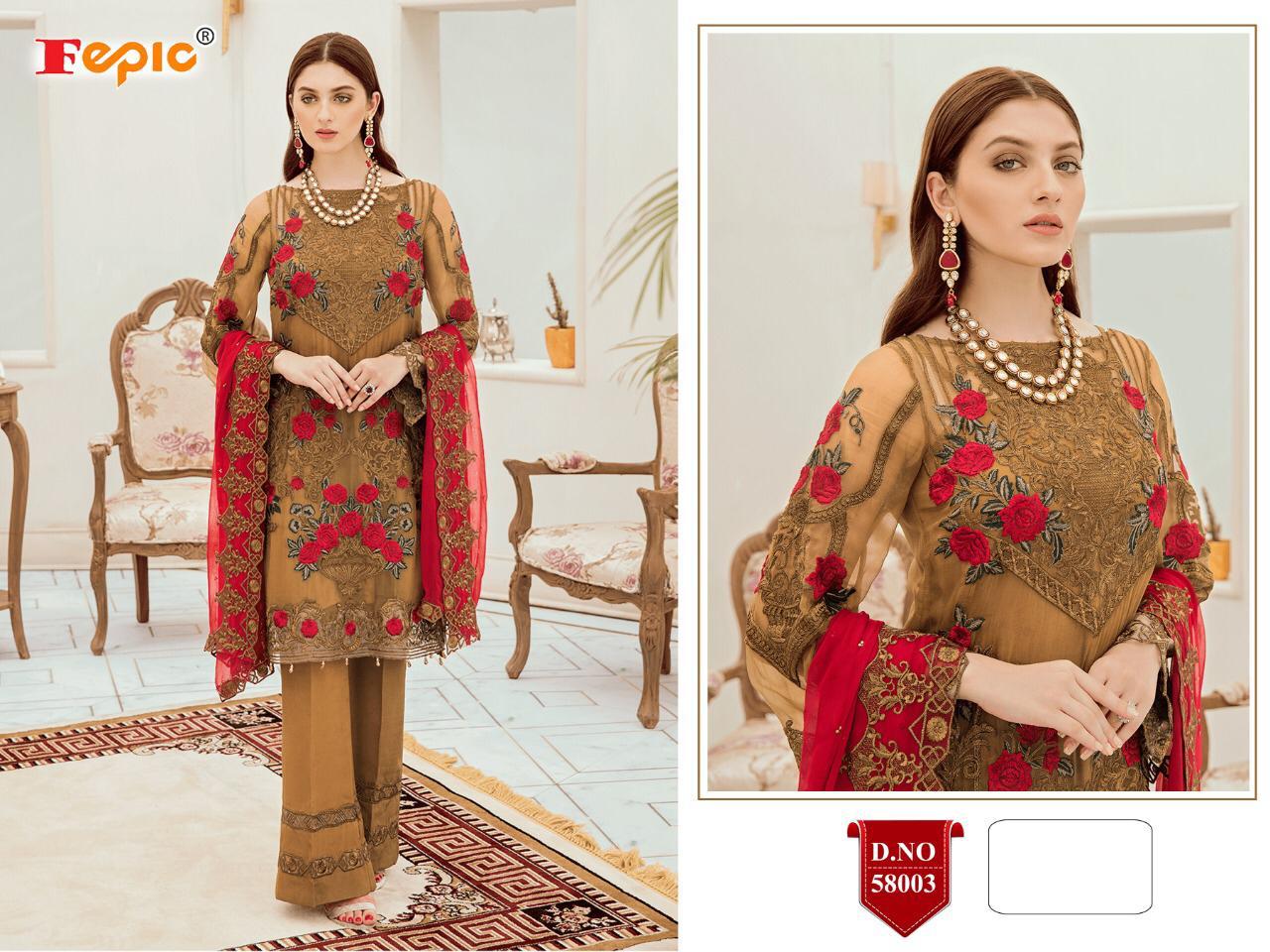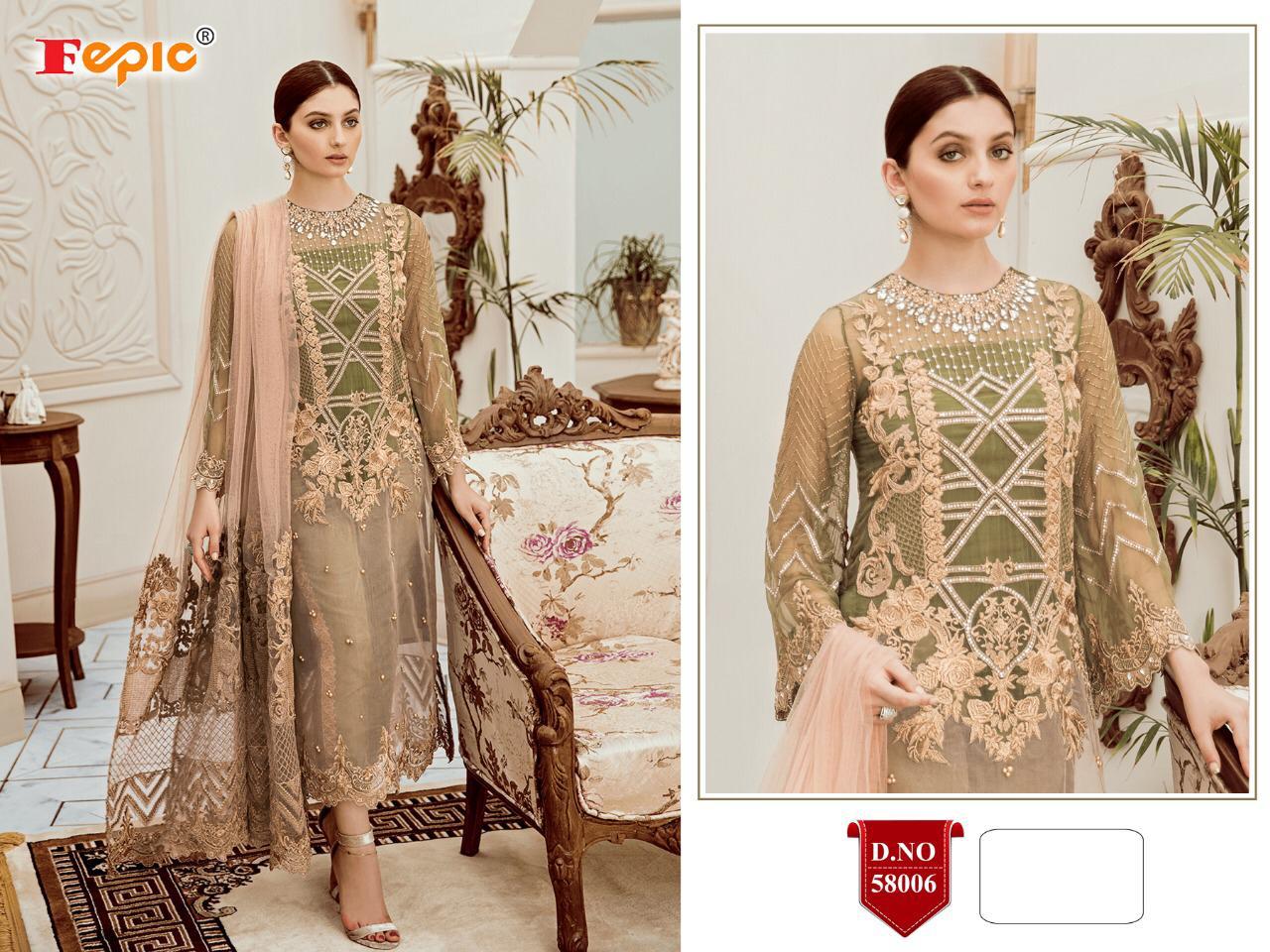 Buy Online Rosemeen Riona By Fepic Series 58001 To 58006 Pakistani Suits Wholesale Supplier Nd Dealer Gujarat 6 Pcs of Full Catalogue at Wholesale Price. Looking for Rosemeen Riona By Fepic Series 58001 To 58006 Pakistani Suits Wholesale Supplier Nd Dealer Gujarat Full Catalouge at Best Price? Buy Now Rosemeen Riona By Fepic Series 58001 To 58006 Pakistani Suits Wholesale Supplier Nd Dealer Gujarat at Wholesale Rate of Rs 7554 with Total 6 Pcs from authroized dealer and supplier of FEPIC Brand. Cost of Each piece is just only Rs 1259 which is very low and affordable price to resale the product in your retail store ,This is Surat based Wholesale Supplier & Dealer of FEPIC Brand. Click on Brand name to Know more about FEPIC Brand's products.Call or Whatsapp on 9898838984 for booking or enquiry