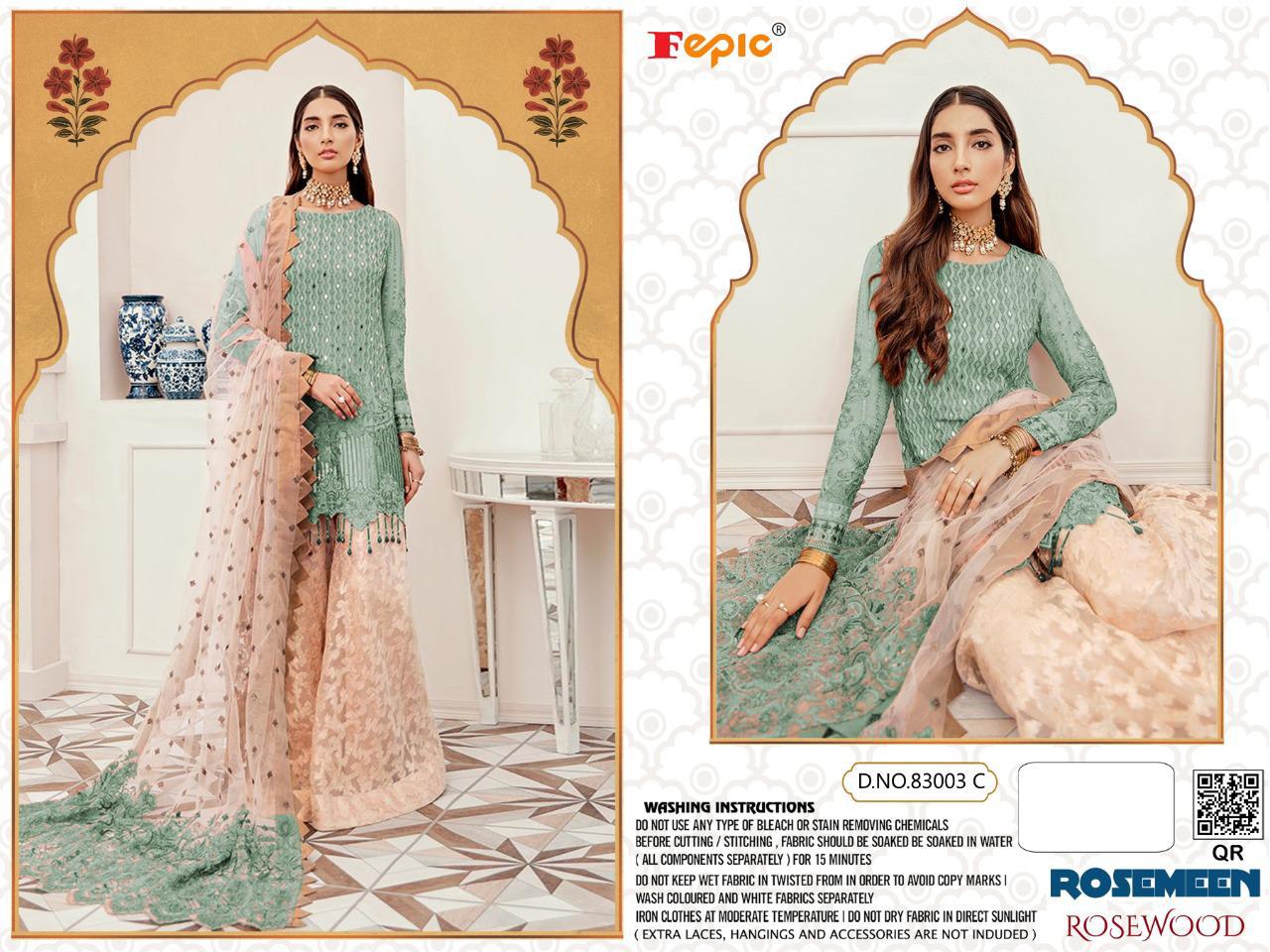 Buy Online Rosemeen Rosewood Blackbuster By Fepic Pakistani Suits Wholesale Supplier Gujarat 4 Pcs of Full Catalogue at Wholesale Price. Looking for Rosemeen Rosewood Blackbuster By Fepic Pakistani Suits Wholesale Supplier Gujarat Full Catalouge at Best Price? Buy Now Rosemeen Rosewood Blackbuster By Fepic Pakistani Suits Wholesale Supplier Gujarat at Wholesale Rate of Rs 5752 with Total 4 Pcs from authroized dealer and supplier of FEPIC Brand. Cost of Each piece is just only Rs 1438 which is very low and affordable price to resale the product in your retail store ,This is Surat based Wholesale Supplier & Dealer of FEPIC Brand. Click on Brand name to Know more about FEPIC Brand's products.Call or Whatsapp on 9898838984 for booking or enquiry
