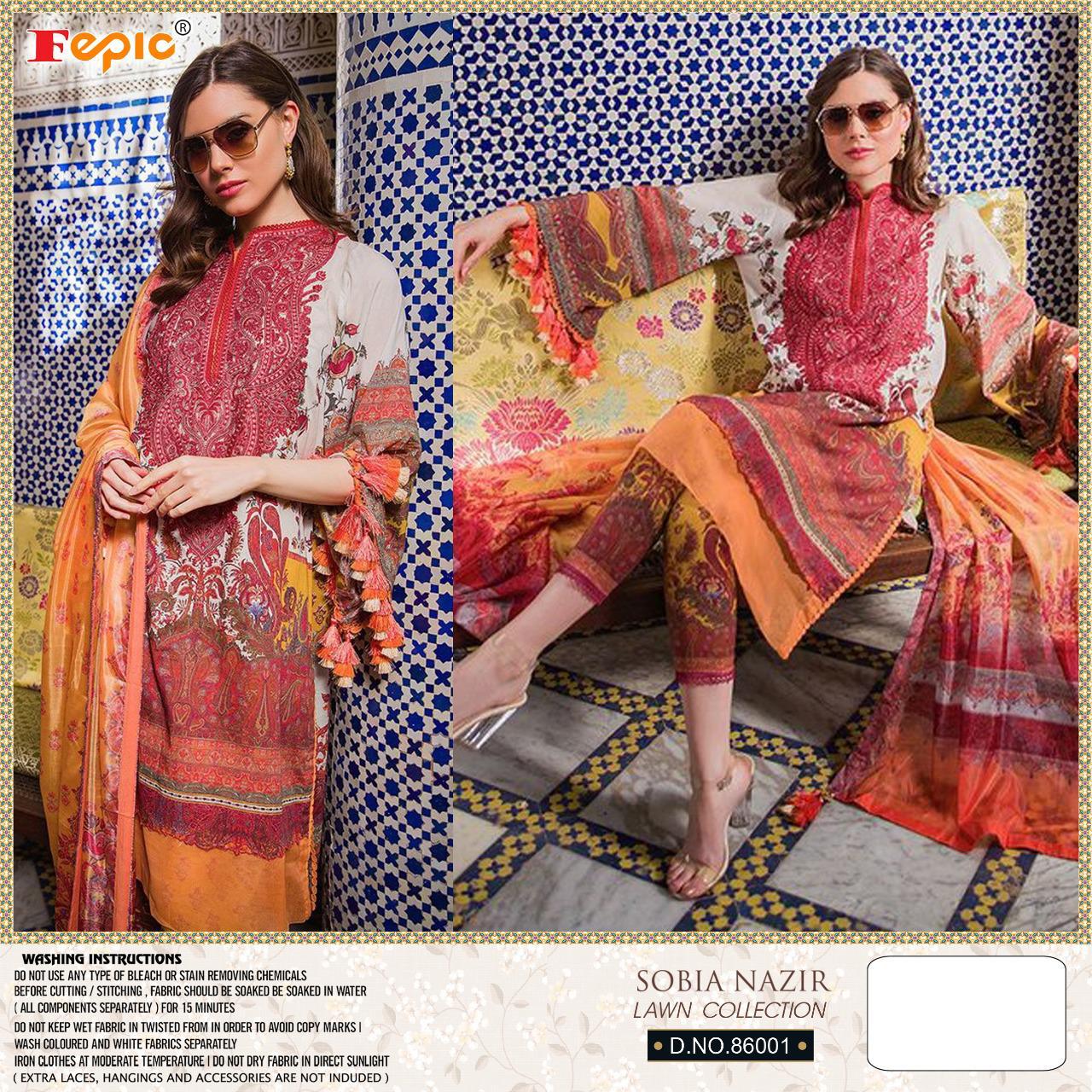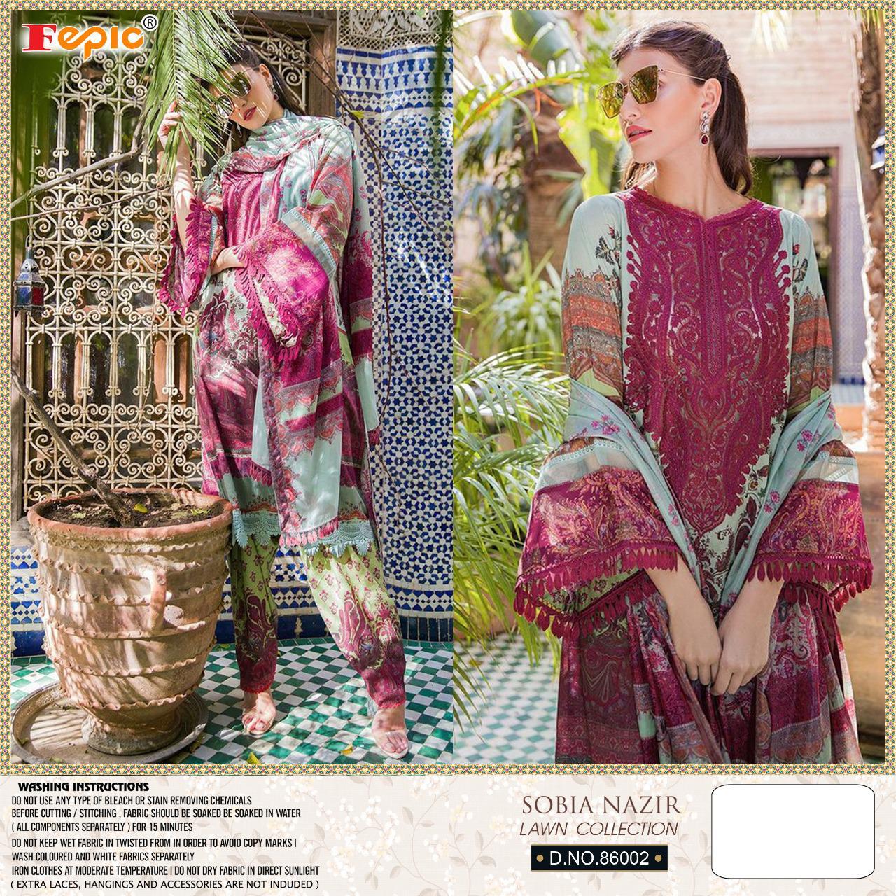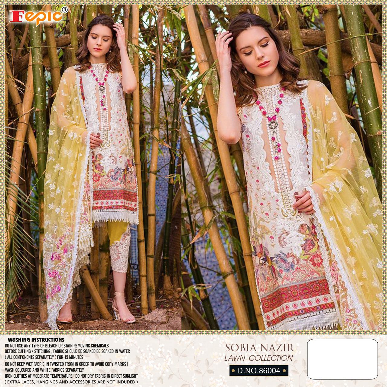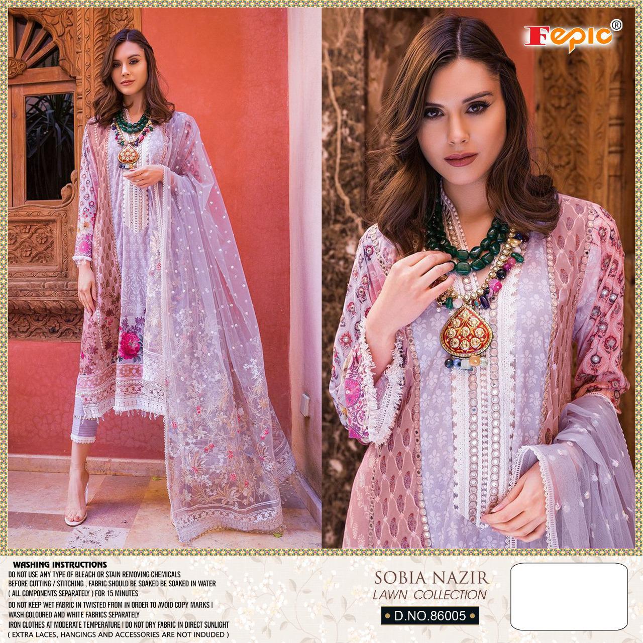 Buy Online Rosemeen Sobia Nazir Lawn Collection By Fepic Manufacturer Traders Surat 5 Pcs of Full Catalogue at Wholesale Price. Looking for Rosemeen Sobia Nazir Lawn Collection By Fepic Manufacturer Traders Surat Full Catalouge at Best Price? Buy Now Rosemeen Sobia Nazir Lawn Collection By Fepic Manufacturer Traders Surat at Wholesale Rate of Rs 4745 with Total 5 Pcs from authroized dealer and supplier of FEPIC Brand. Cost of Each piece is just only Rs 949 which is very low and affordable price to resale the product in your retail store ,This is Surat based Wholesale Supplier & Dealer of FEPIC Brand. Click on Brand name to Know more about FEPIC Brand's products.Call or Whatsapp on 9898838984 for booking or enquiry