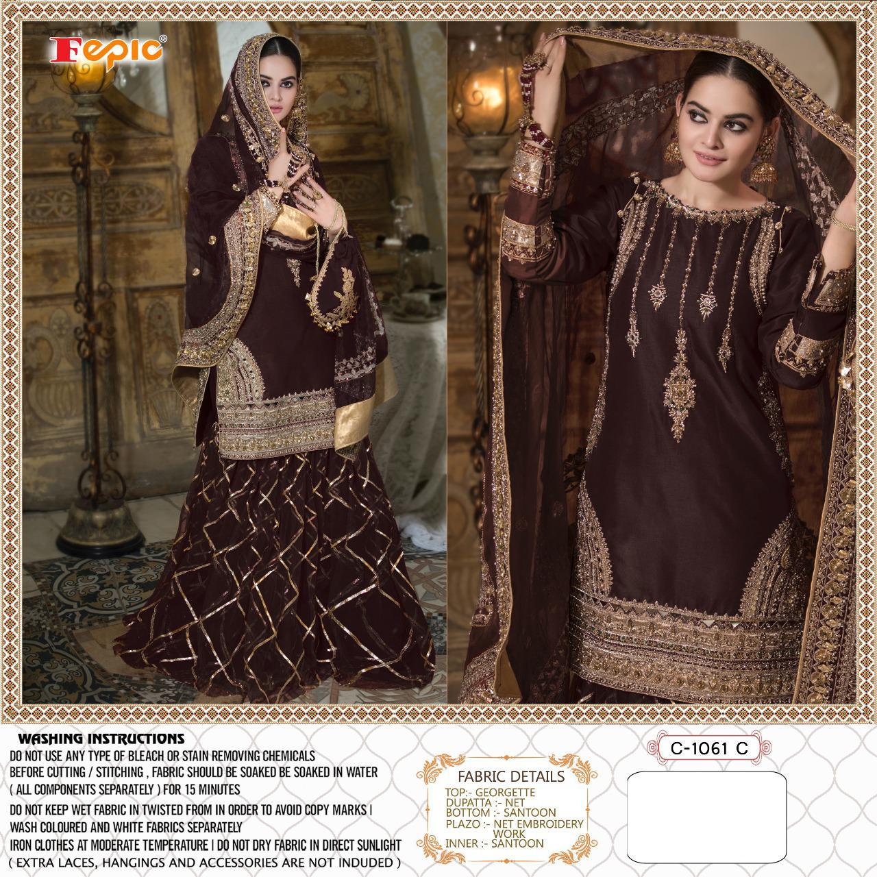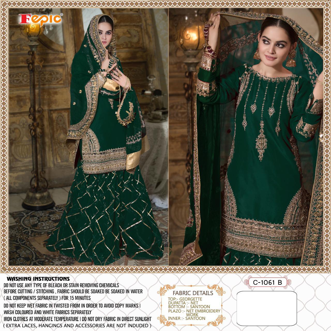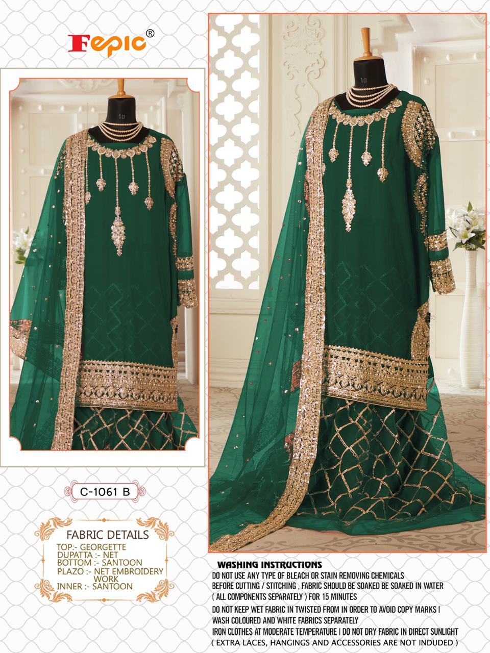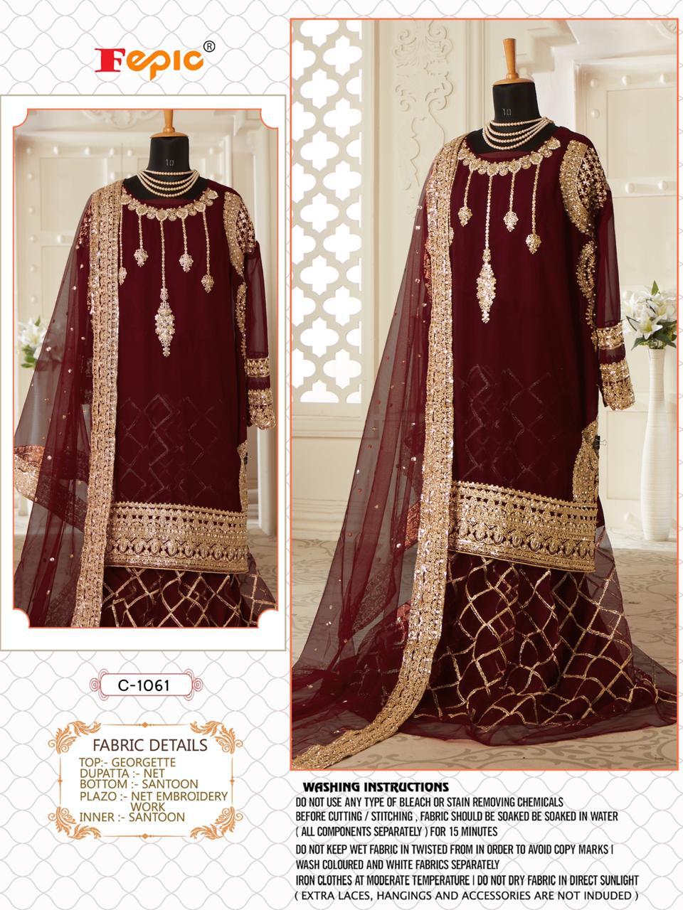 ??Dear Sir/Madam... Thanks for your support.? ?Today we are launching BRIDAL Concept... ?ROSEMEEN * SUFIA*? ??Fabric details ?? ? Top : GEORGETTE EMBROIDERED WITH HEAVY HANDWORKED ?Bottom : NET EMBROIDERED (inner - SANTOON ) ?Inner : SANTOON ?Dupatta : NET EMBROIDERED ??PRICR : ? 1299/-+ *GST* ??????????Hurry up... ?LIMITED STOCK ? ?pre booking only ?book your order fast Limited stock DISPATCH STARTS 5-6 days Regards FEPIC 100+ singles |