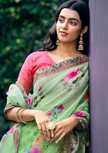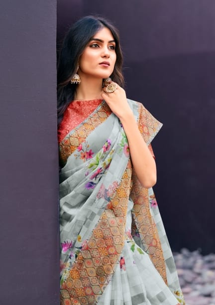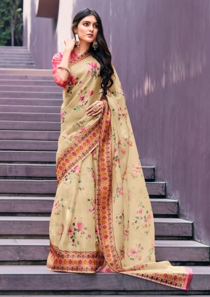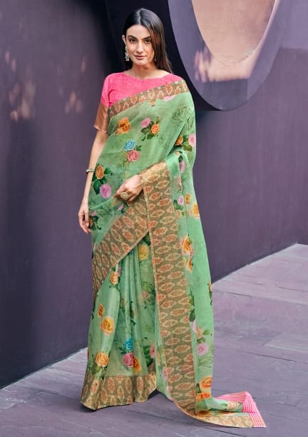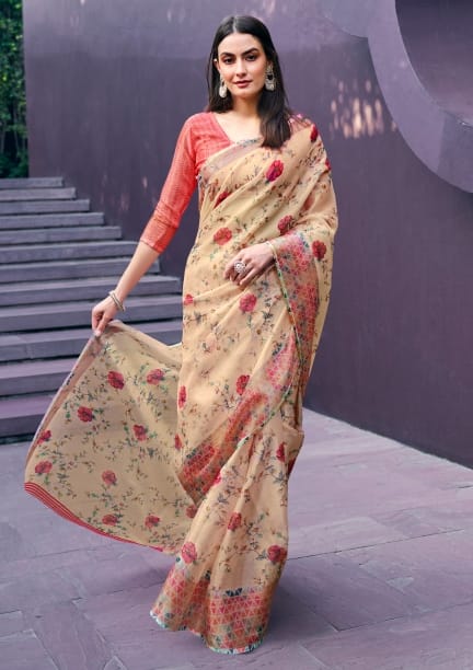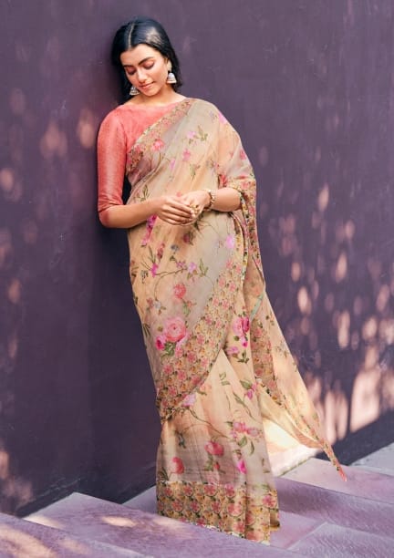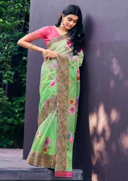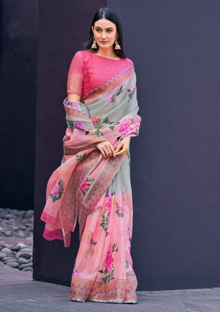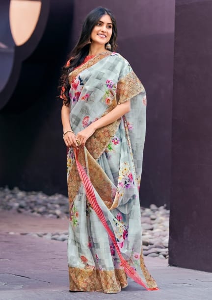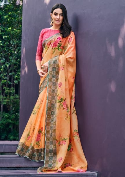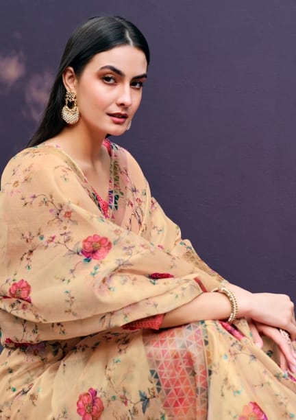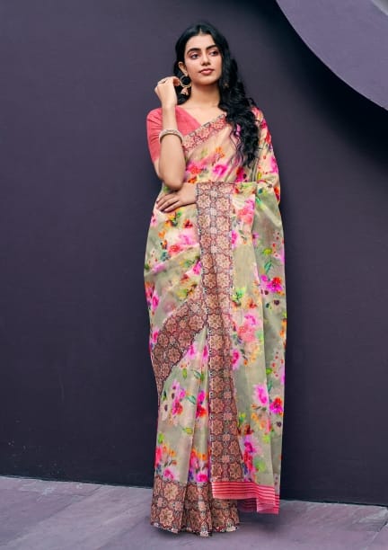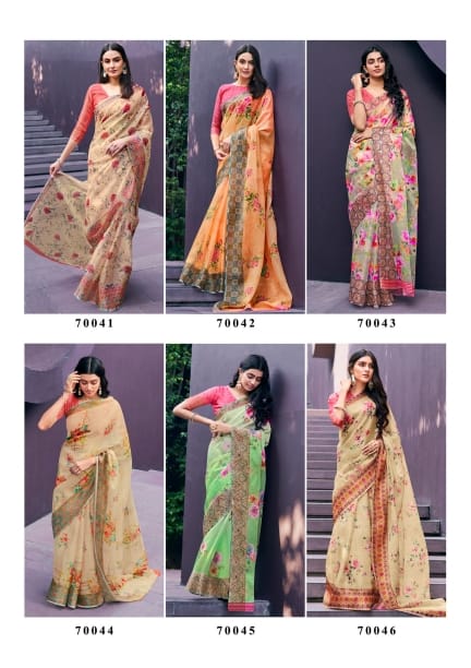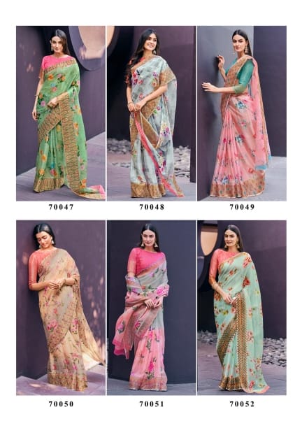 Rosey orgenza vol 3 Shangrila Digital floral Prints On Slub Orgenza Fabric With Weaving Border...!! 12 pc 12 design 590/- |