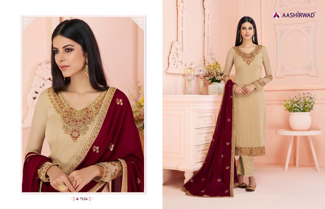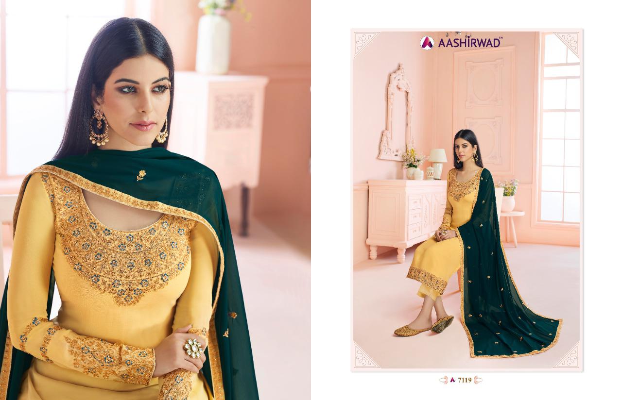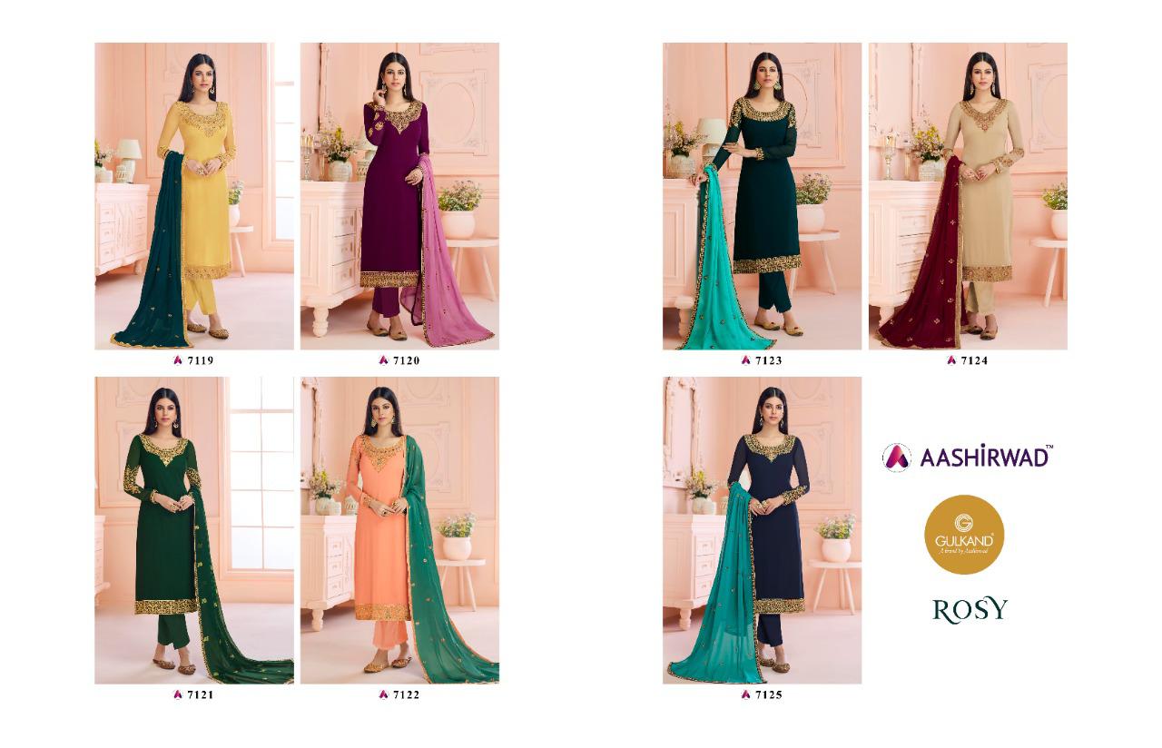 Buy Online Rosy By Aashirwad Series 7119 To 7125 Designer Party Wear Suits Set And Single Wholesale Supplier Gujarat 7 Pcs of Full Catalogue at Wholesale Price. Looking for Rosy By Aashirwad Series 7119 To 7125 Designer Party Wear Suits Set And Single Wholesale Supplier Gujarat Full Catalouge at Best Price? Buy Now Rosy By Aashirwad Series 7119 To 7125 Designer Party Wear Suits Set And Single Wholesale Supplier Gujarat at Wholesale Rate of Rs 9765 with Total 7 Pcs from authroized dealer and supplier of AASHIRWAD Brand. Cost of Each piece is just only Rs 1395 which is very low and affordable price to resale the product in your retail store ,This is Surat based Wholesale Supplier & Dealer of AASHIRWAD Brand. Click on Brand name to Know more about AASHIRWAD Brand's products.Call or Whatsapp on 9898838984 for booking or enquiry