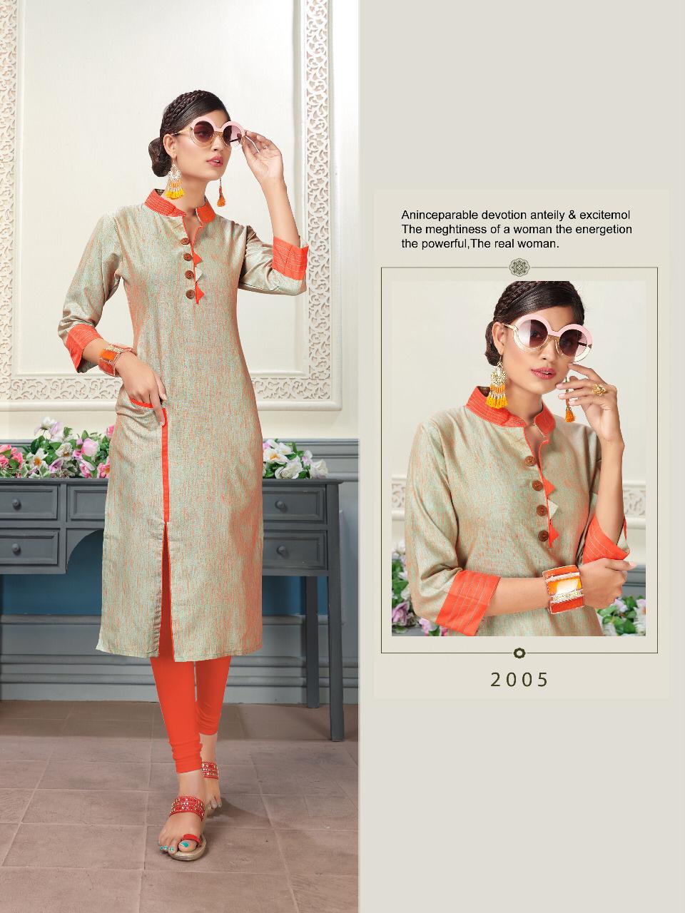 Roy Vol 2 By Kesar 2001 Series Fancy Khadi Cotton Kurti Catlog Wholesaler Surat
