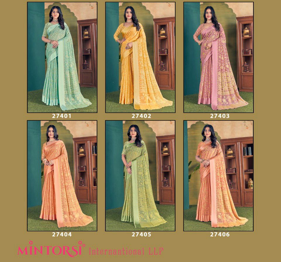 Buy Online Royal Brasso By Mintorsi Designer Saree Single Avilable Wholesaler Supplier From Surat 6 Pcs of Full Catalogue at Wholesale Price. Looking for Royal Brasso By Mintorsi Designer Saree Single Avilable Wholesaler Supplier From Surat Full Catalouge at Best Price? Buy Now Royal Brasso By Mintorsi Designer Saree Single Avilable Wholesaler Supplier From Surat at Wholesale Rate of Rs 5970 with Total 6 Pcs from authroized dealer and supplier of Brand. Cost of Each piece is just only Rs 995 which is very low and affordable price to resale the product in your retail store ,This is Surat based Wholesale Supplier & Dealer of Brand. Click on Brand name to Know more about Brand's products.Call or Whatsapp on 9898838984 for booking or enquiry