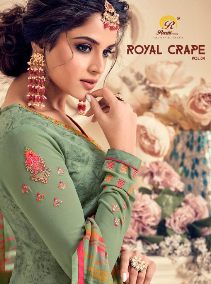 Royal Crape Vol 4 By Rashi Series 7031 To 7040 Crepe Embroidered Designer Party Wear Suits Wholesale Supplier Gujarat