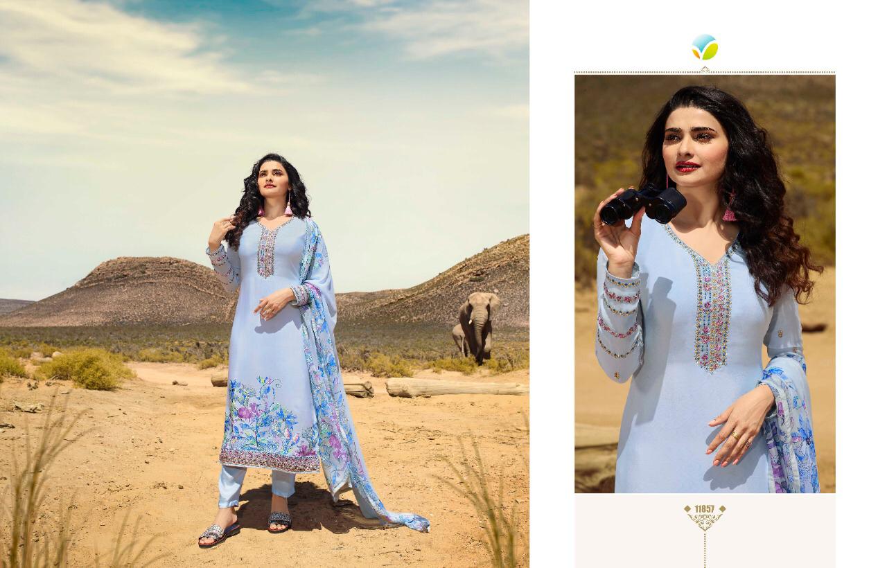 Royal Crepe 28 By Vinay Fashion Series 11851 To 11859 Designer Party Wear Suits Wholesale Supplier Gujarat