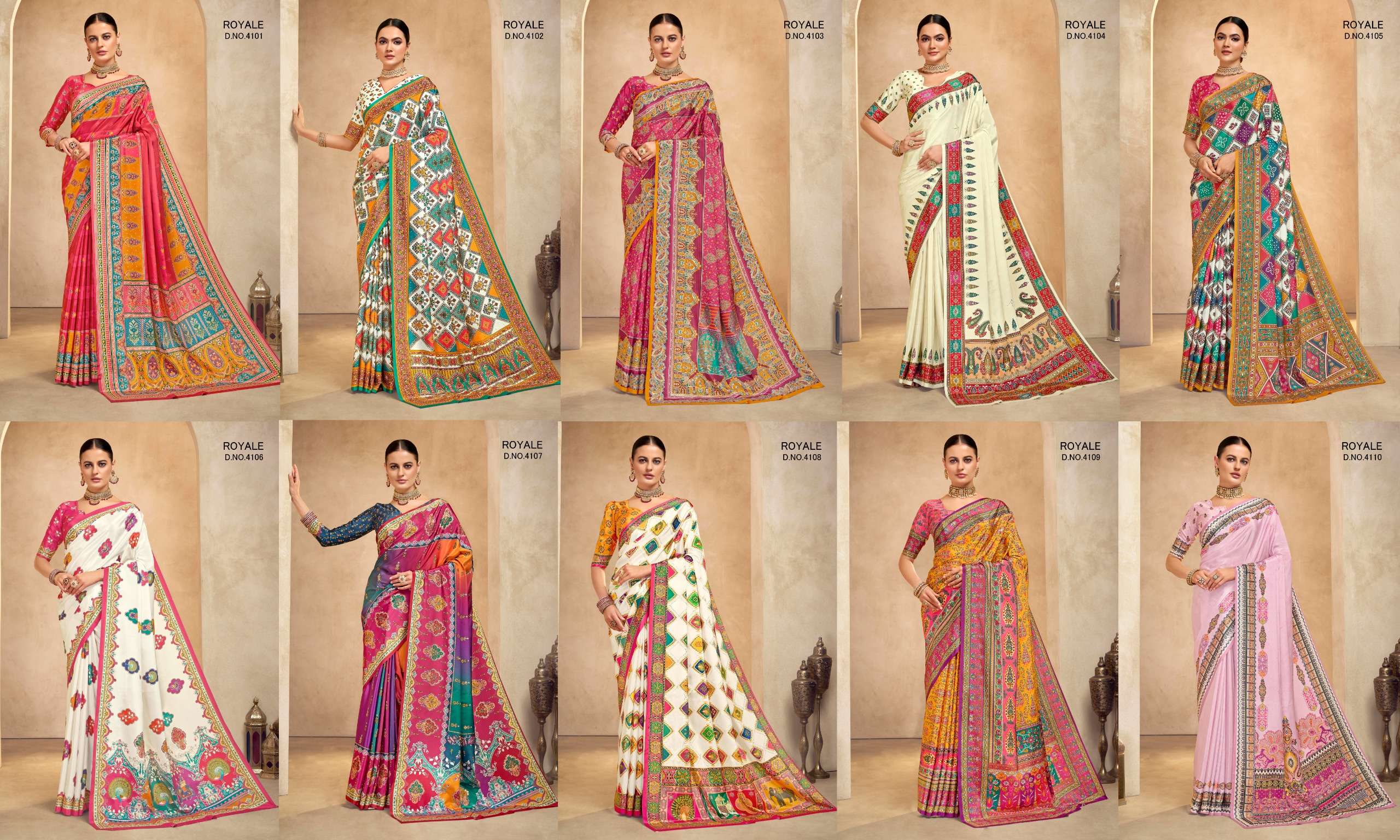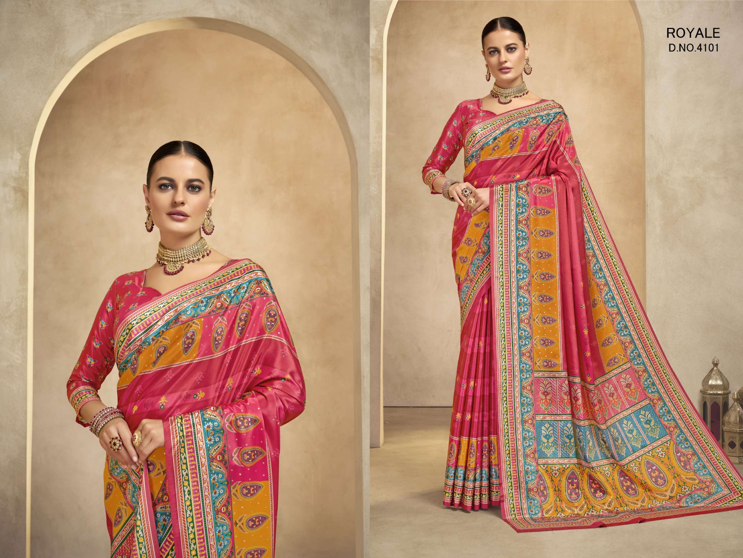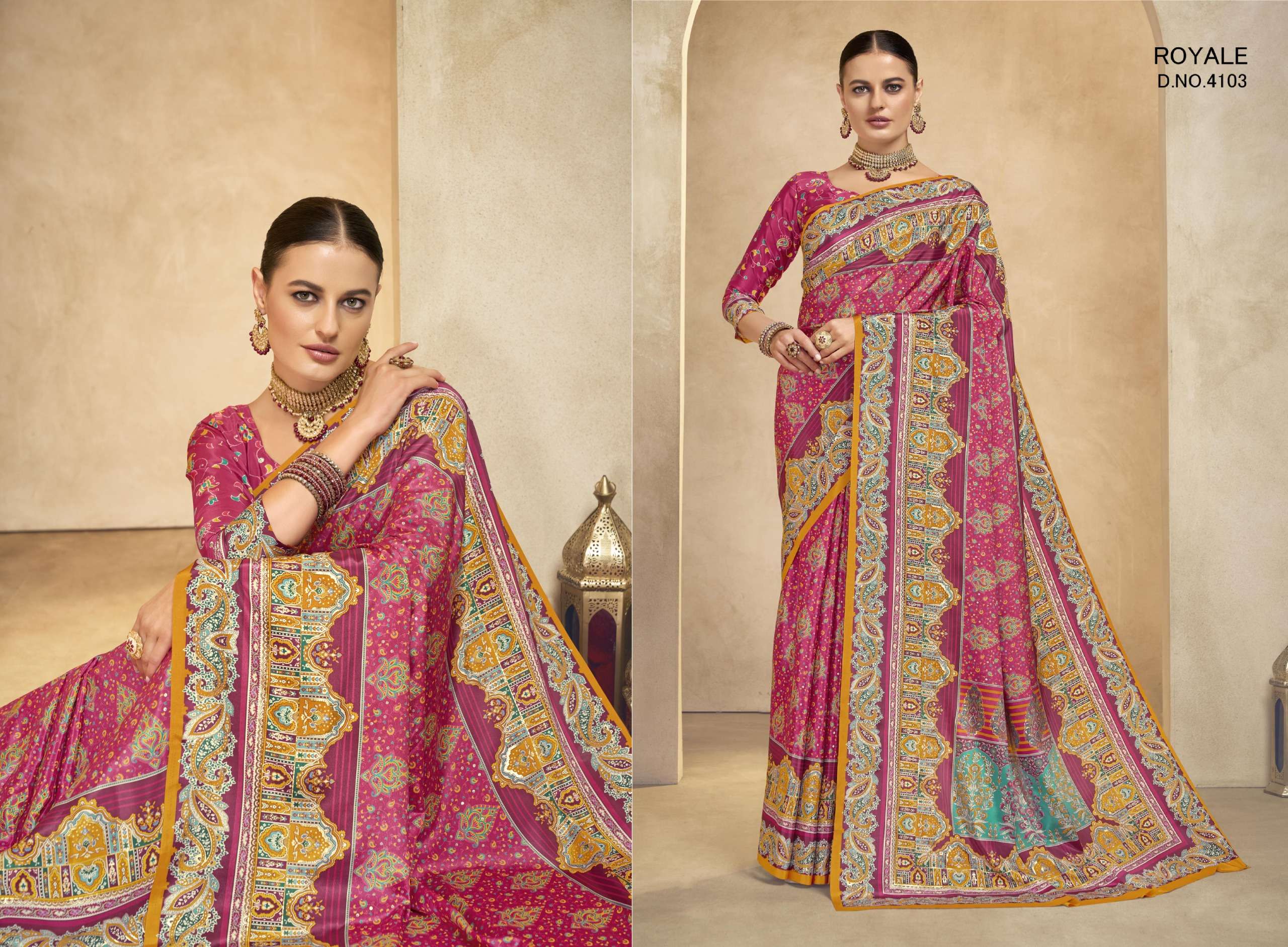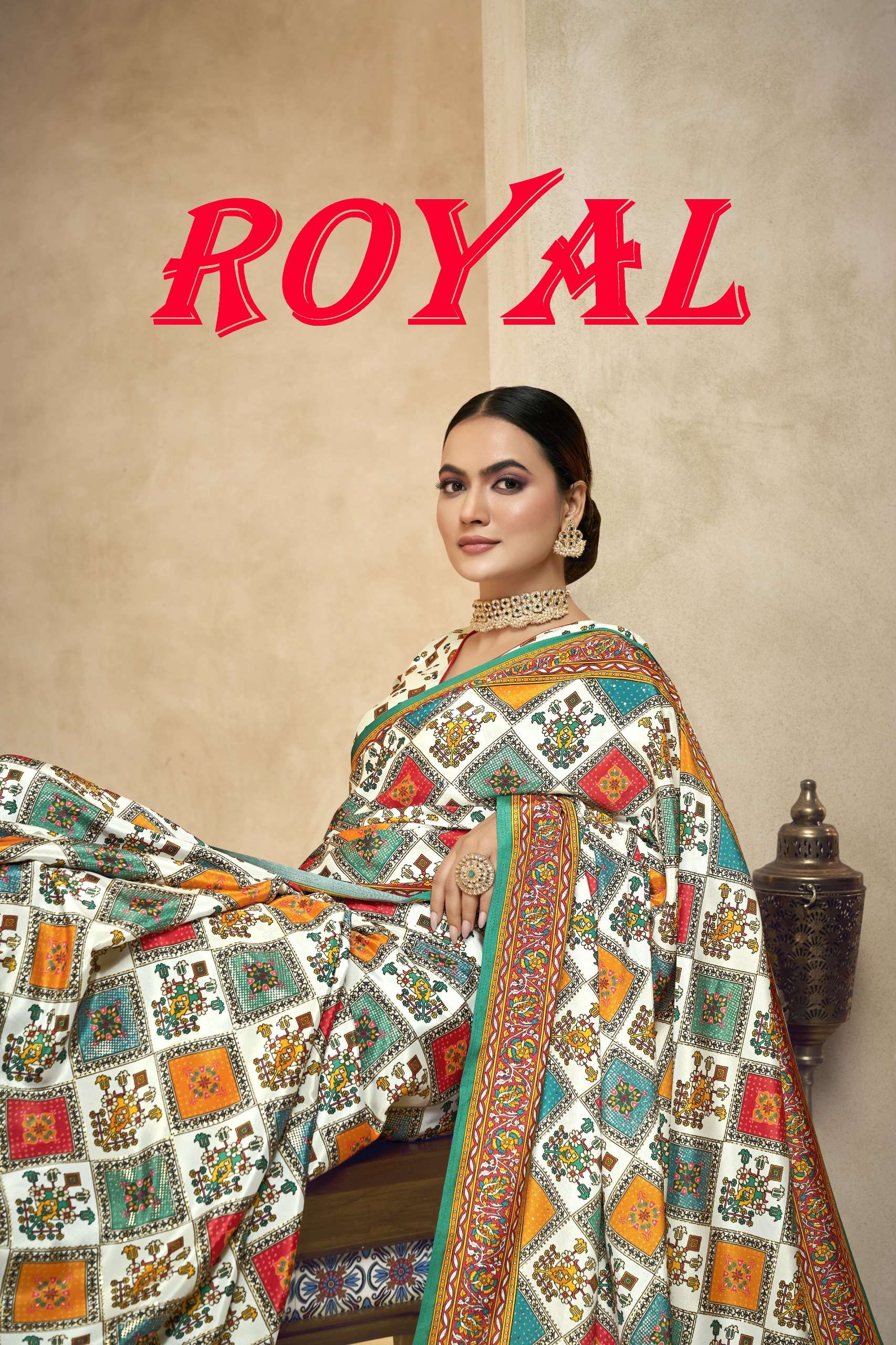 *ROYALE celebrates regal elegance with a rich Rajwadi-inspired theme. Crafted in crepe and finished with digital print and foil position work, each design reflects vibrant heritage with a modern spirit.*