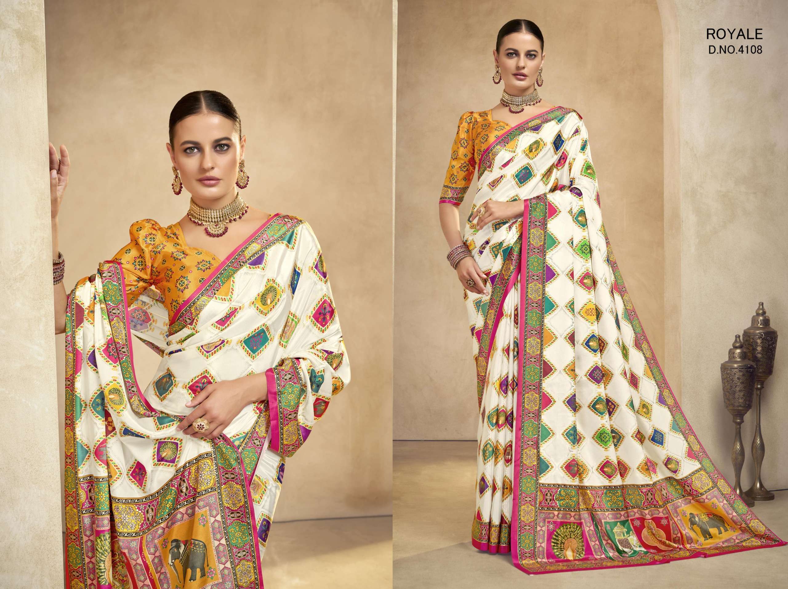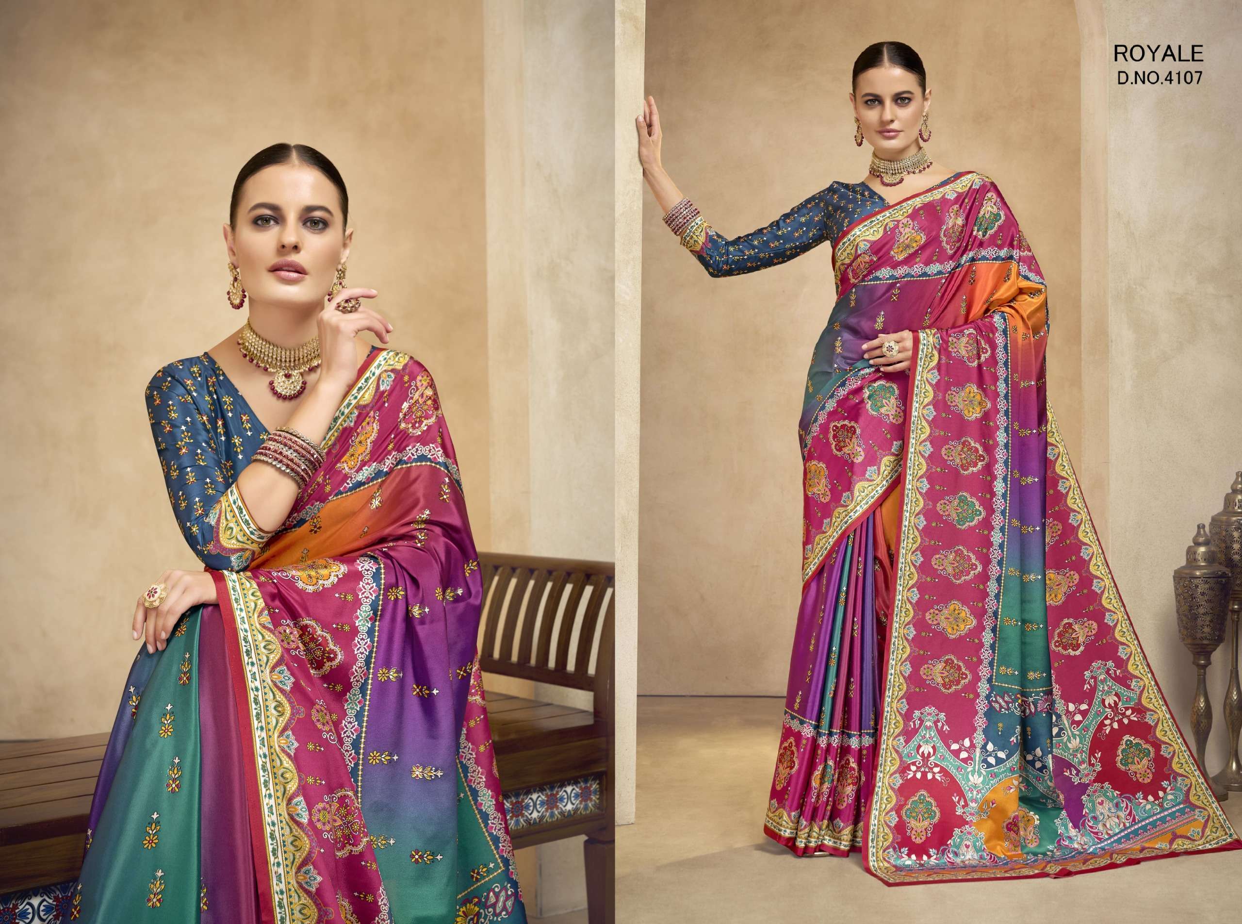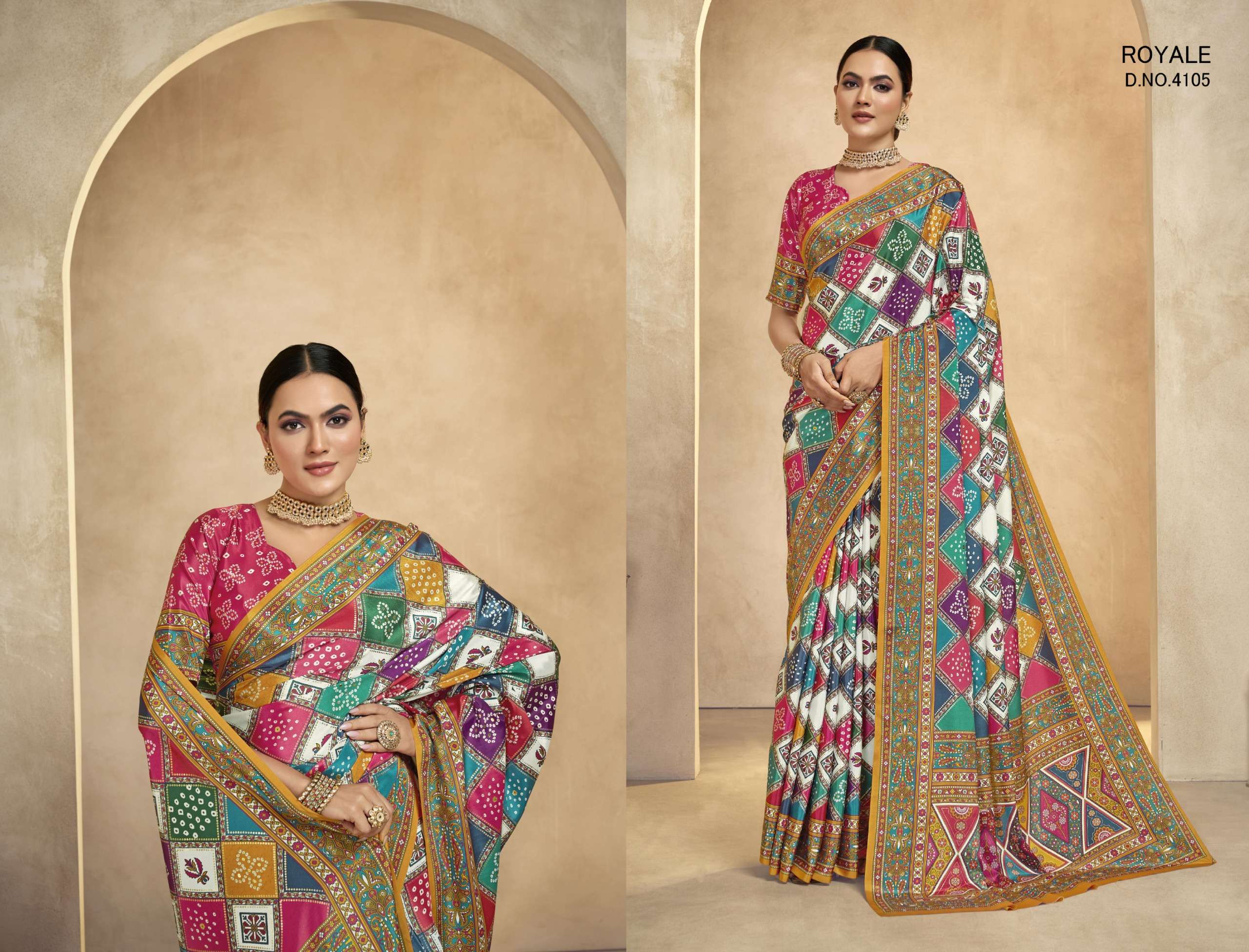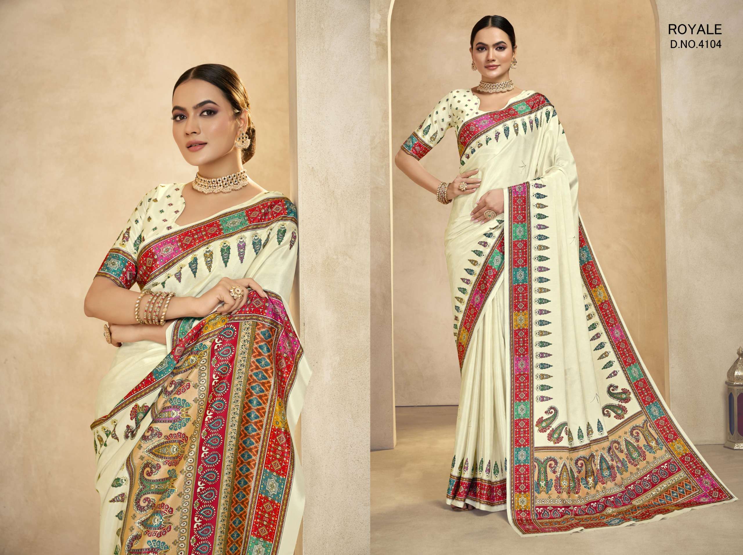 *ROYALE celebrates regal elegance with a rich Rajwadi-inspired theme. Crafted in crepe and finished with digital print and foil position work, each design reflects vibrant heritage with a modern spirit.*