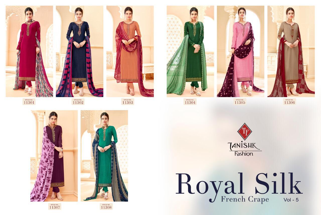 Royal Silk Vol 5 By Tanishk Fashion Crepe Embroidered Suits Wholesale Supplier Gujarat
