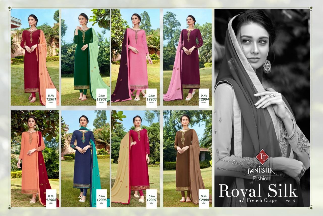 Royal Silk Vol 9 By Tanishk Fashion French Crape Suit Wholesale Supplier Nd Trader India