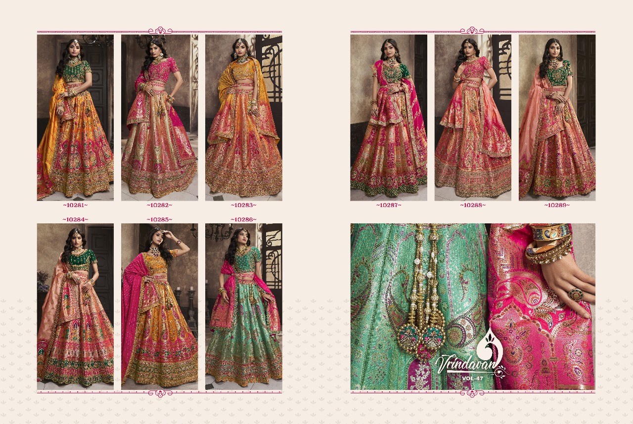 Royal Vrindavan Vol 47 Series 10281 To 10289 Silk With Sequence Zarkan Work Wedding Lehengacholi Collection Manufacturer Surat