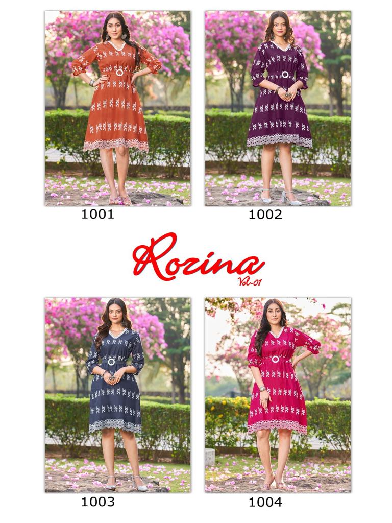 Buy Online Rozina Short Tunic With Matching Belt 4 Pcs of Full Catalogue at Wholesale Price. Looking for Rozina Short Tunic With Matching Belt Full Catalouge at Best Price? Buy Now Rozina Short Tunic With Matching Belt at Wholesale Rate of Rs 0 with Total 4 Pcs from authroized dealer and supplier of Brand. Cost of Each piece is just only Rs 0 which is very low and affordable price to resale the product in your retail store ,This is Surat based Wholesale Supplier & Dealer of Brand. Click on Brand name to Know more about Brand's products.Call or Whatsapp on 9898838984 for booking or enquiry