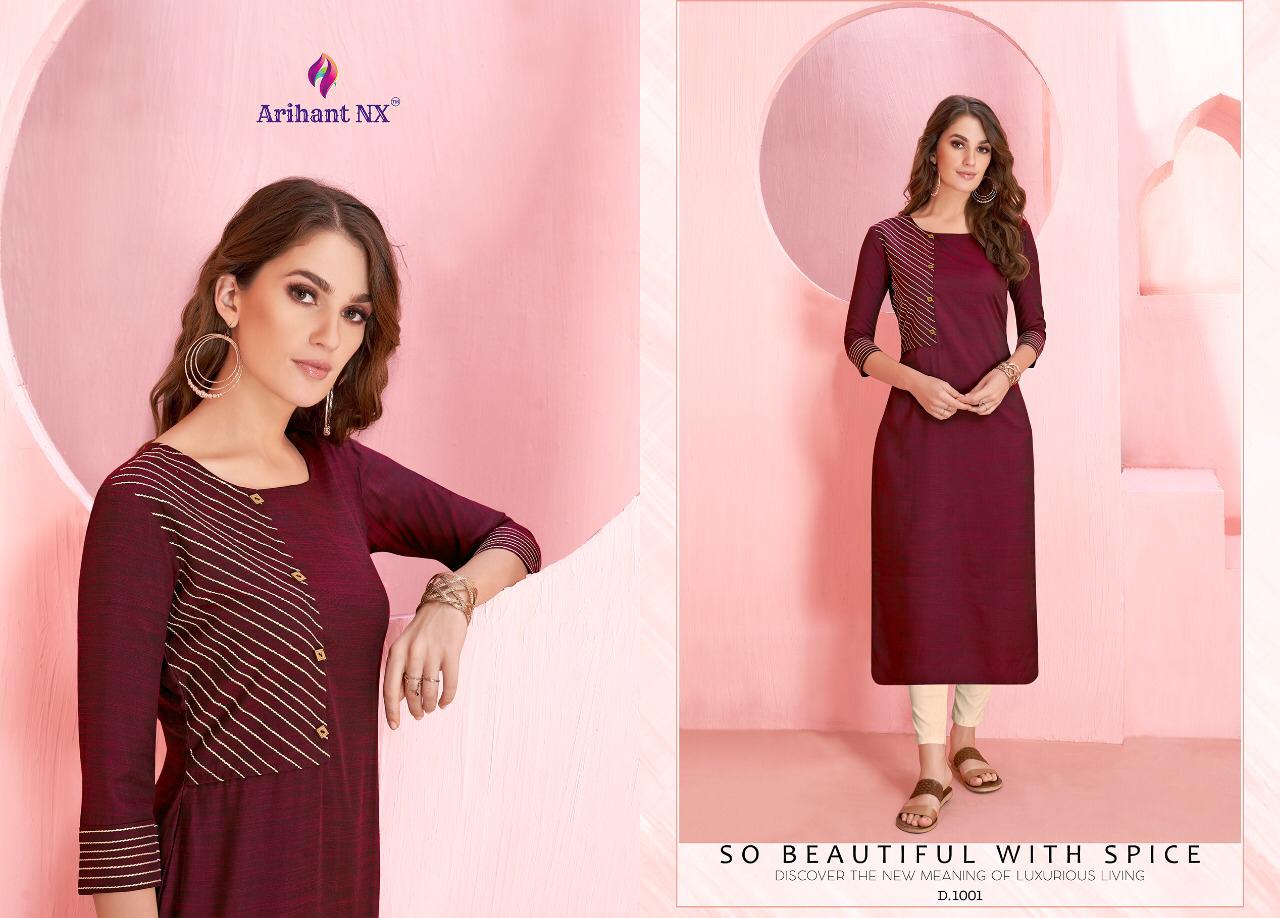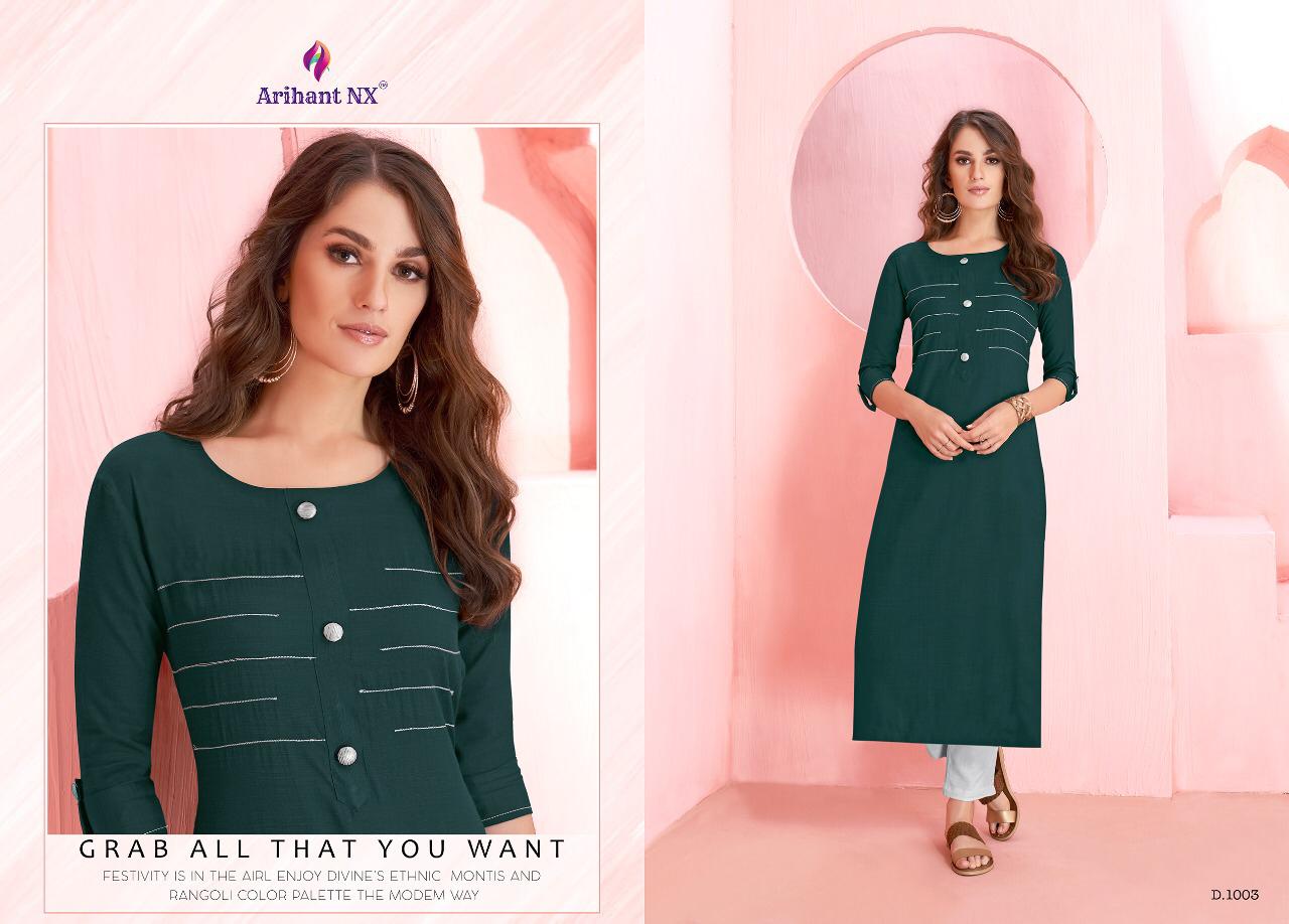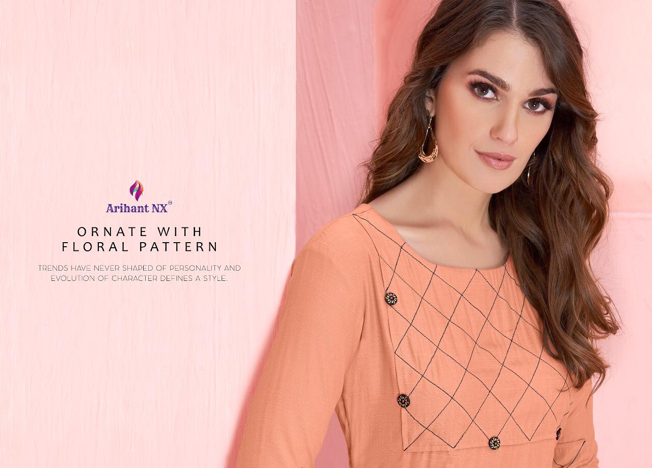 Buy Online Rozmin By Arihant Nx Series 1001 To 1006 Reyon Kurtis Wholesale Supplier And Dealer Surat 6 Pcs of Full Catalogue at Wholesale Price. Looking for Rozmin By Arihant Nx Series 1001 To 1006 Reyon Kurtis Wholesale Supplier And Dealer Surat Full Catalouge at Best Price? Buy Now Rozmin By Arihant Nx Series 1001 To 1006 Reyon Kurtis Wholesale Supplier And Dealer Surat at Wholesale Rate of Rs 1770 with Total 6 Pcs from authroized dealer and supplier of ARIHANT NX Brand. Cost of Each piece is just only Rs 295 which is very low and affordable price to resale the product in your retail store ,This is Surat based Wholesale Supplier & Dealer of ARIHANT NX Brand. Click on Brand name to Know more about ARIHANT NX Brand's products.Call or Whatsapp on 9898838984 for booking or enquiry