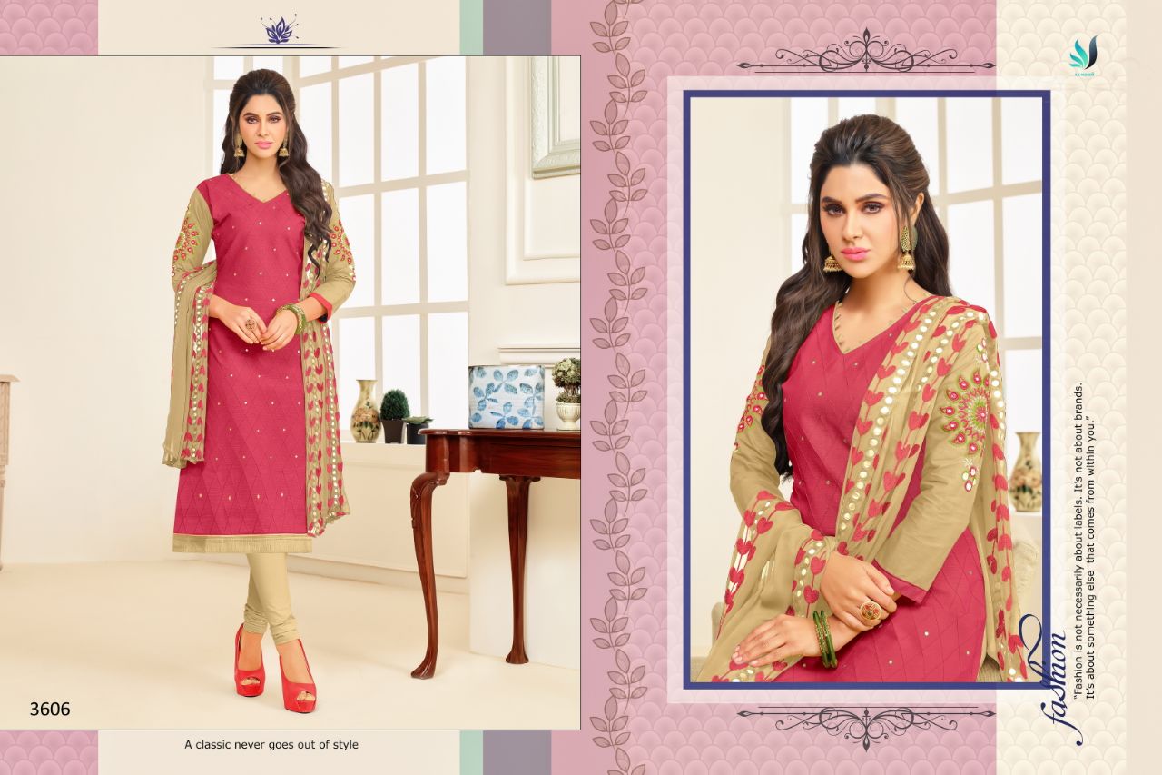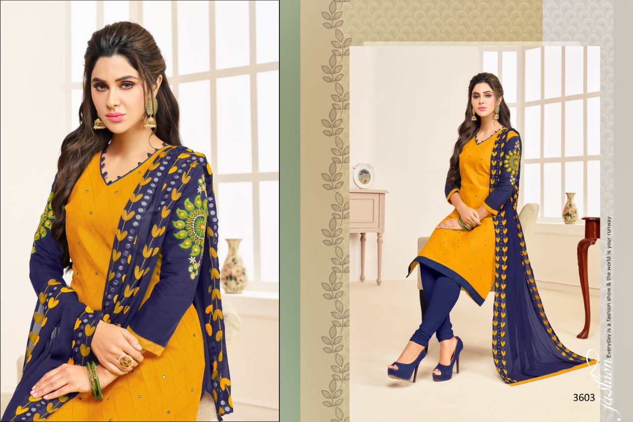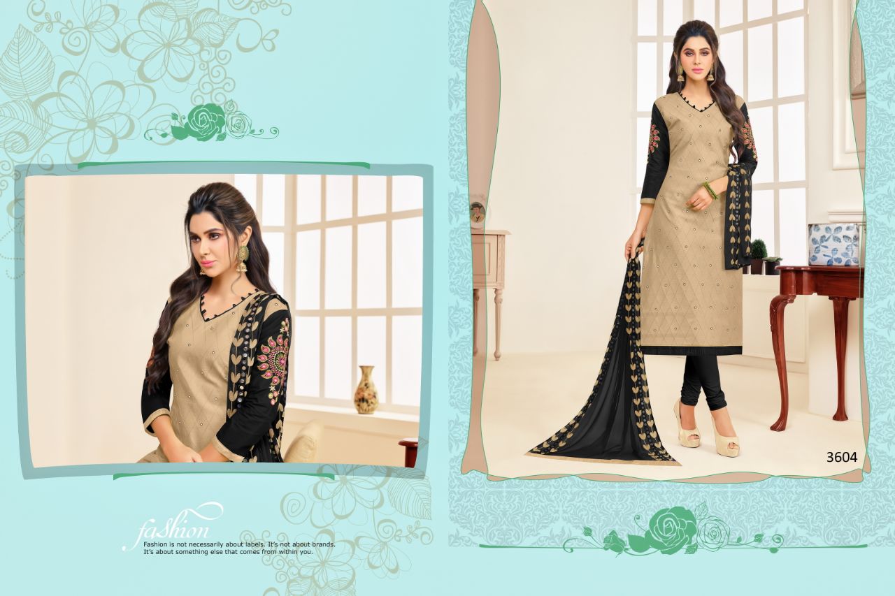 Buy Online Rr Fashion Albeli 3601 Series South Cotton Salwar Suit 12 Pcs of Full Catalogue at Wholesale Price. Looking for Rr Fashion Albeli 3601 Series South Cotton Salwar Suit Full Catalouge at Best Price? Buy Now Rr Fashion Albeli 3601 Series South Cotton Salwar Suit at Wholesale Rate of Rs 7188 with Total 12 Pcs from authroized dealer and supplier of RR fashion Brand. Cost of Each piece is just only Rs 599 which is very low and affordable price to resale the product in your retail store ,This is Surat based Wholesale Supplier & Dealer of RR fashion Brand. Click on Brand name to Know more about RR fashion Brand's products.Call or Whatsapp on 9898838984 for booking or enquiry