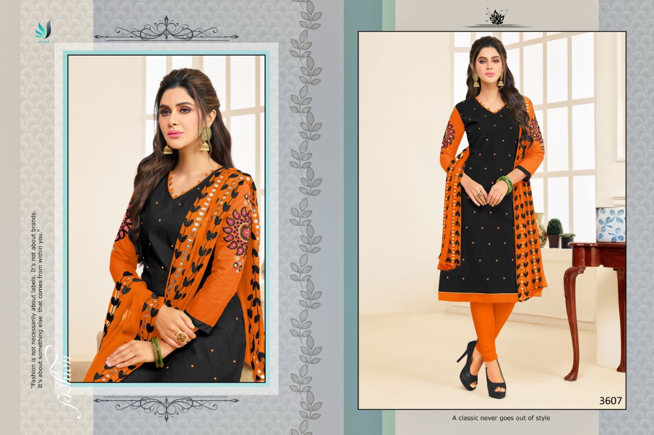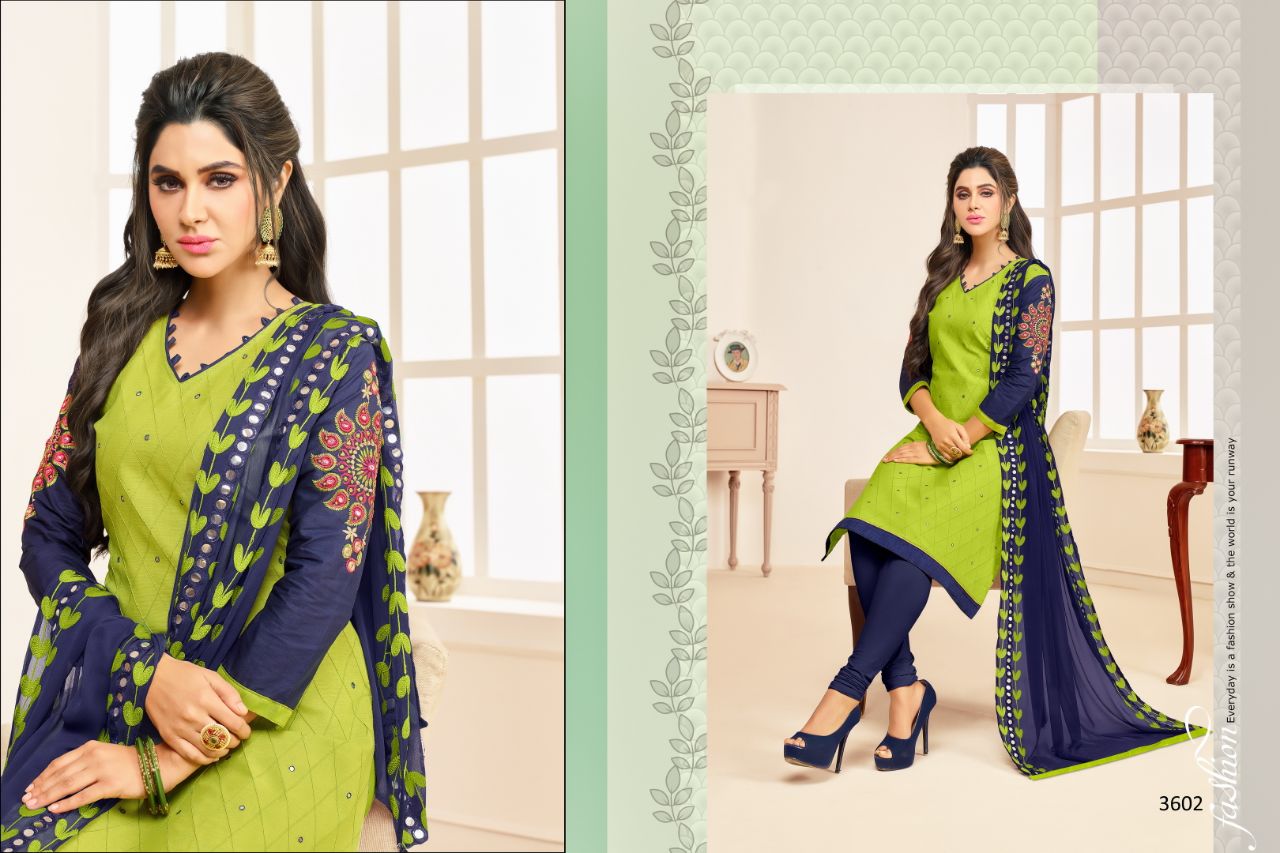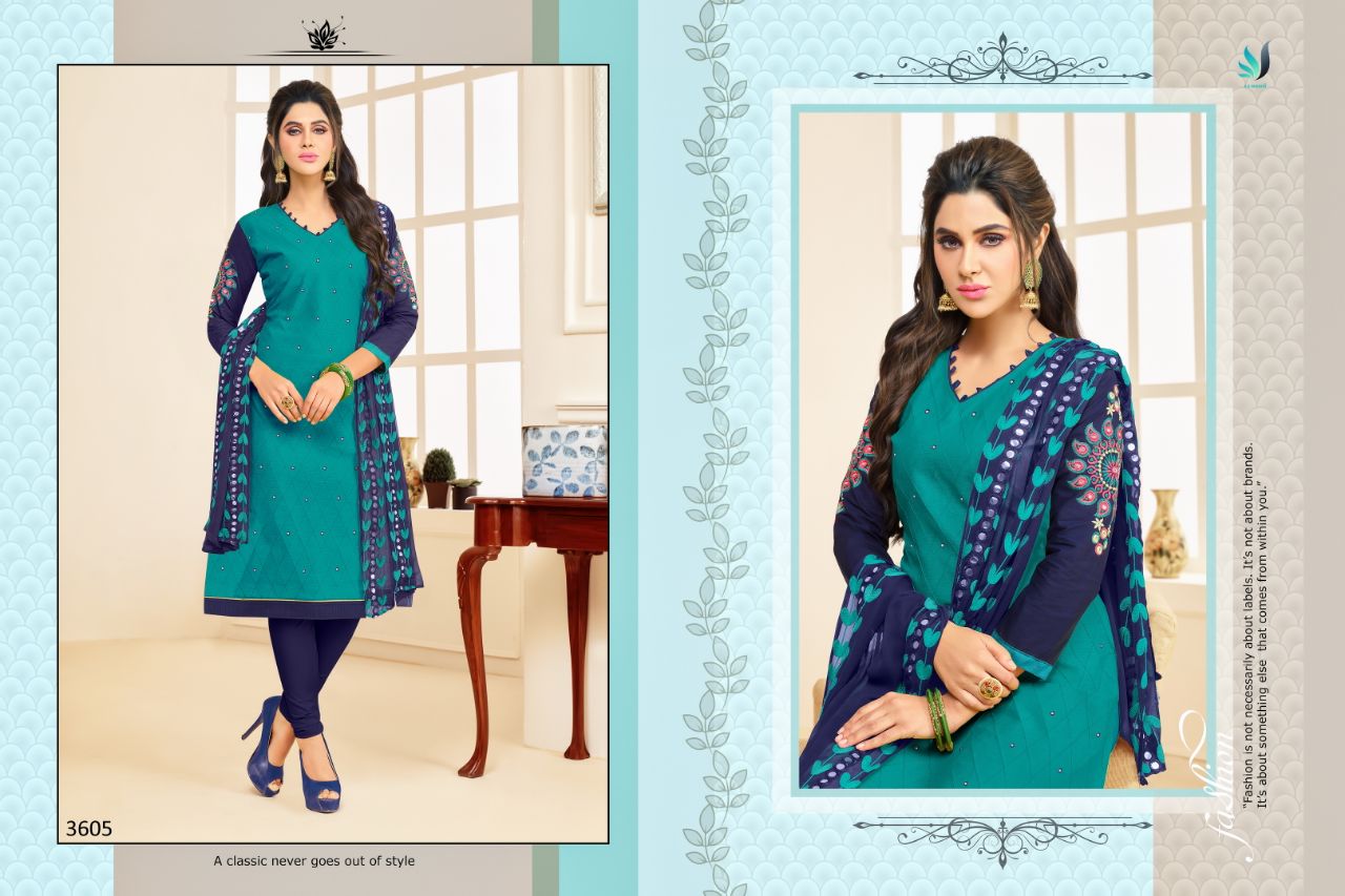 Buy Online Rr Fashion Albeli 3601 Series South Cotton Salwar Suit 12 Pcs of Full Catalogue at Wholesale Price. Looking for Rr Fashion Albeli 3601 Series South Cotton Salwar Suit Full Catalouge at Best Price? Buy Now Rr Fashion Albeli 3601 Series South Cotton Salwar Suit at Wholesale Rate of Rs 7188 with Total 12 Pcs from authroized dealer and supplier of RR fashion Brand. Cost of Each piece is just only Rs 599 which is very low and affordable price to resale the product in your retail store ,This is Surat based Wholesale Supplier & Dealer of RR fashion Brand. Click on Brand name to Know more about RR fashion Brand's products.Call or Whatsapp on 9898838984 for booking or enquiry